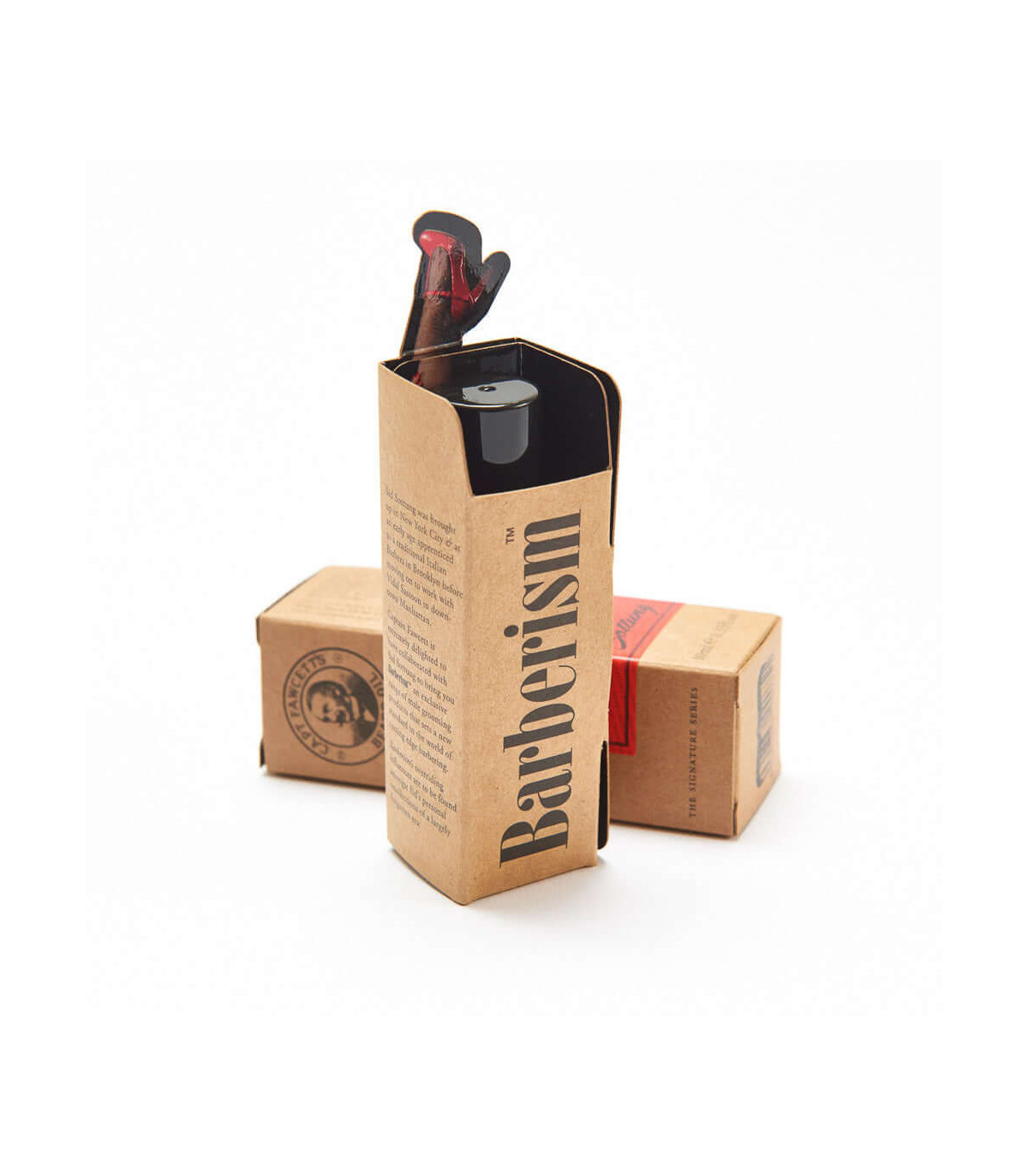 Nutrición compacta con esencia de barbería fina.