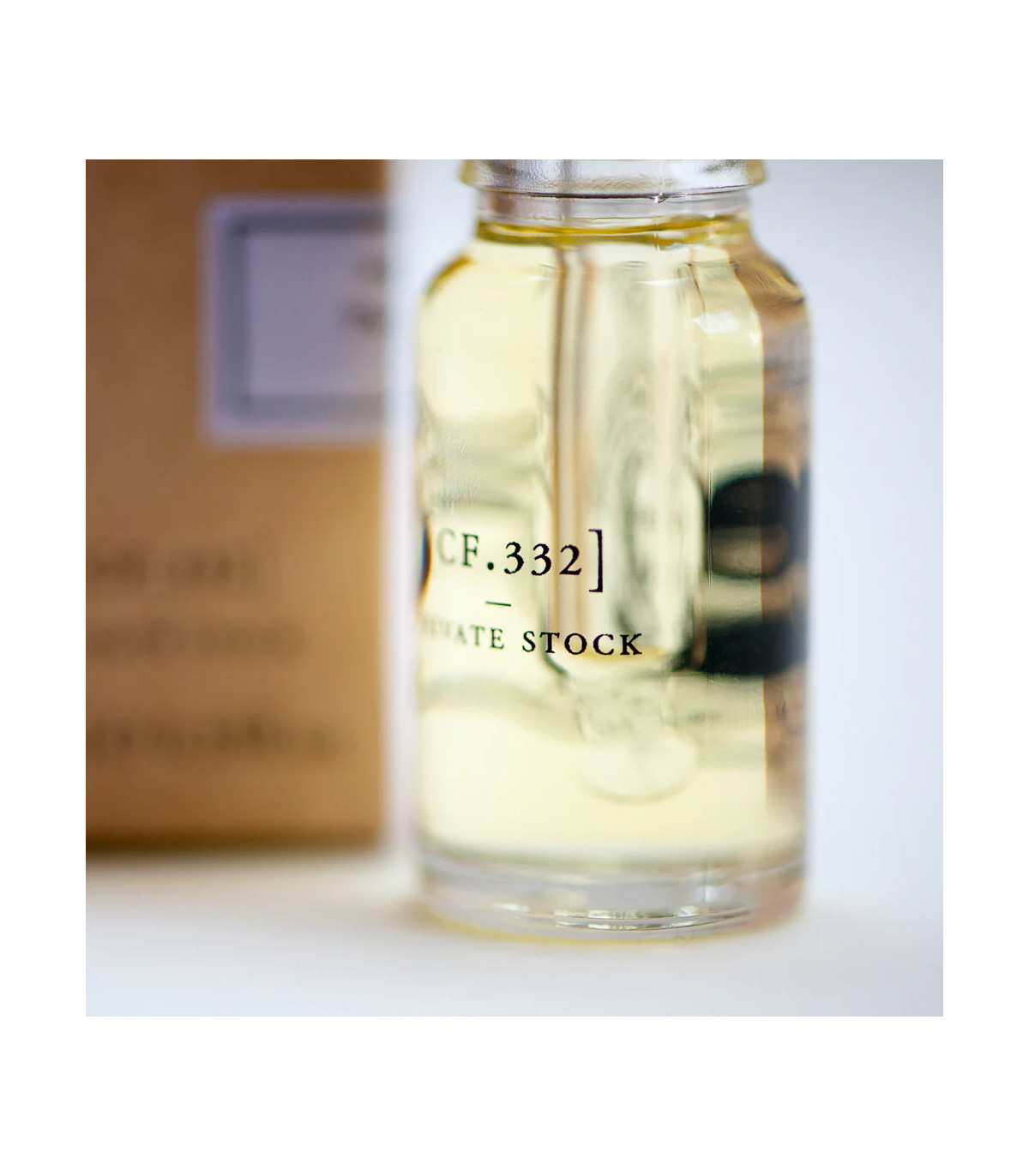 Una mezcla refinada de aceites base de almendra dulce, jojoba y vitamina E, combinados con notas esenciales de madera de cedro, pimienta negra, pachulí y palmarosa.