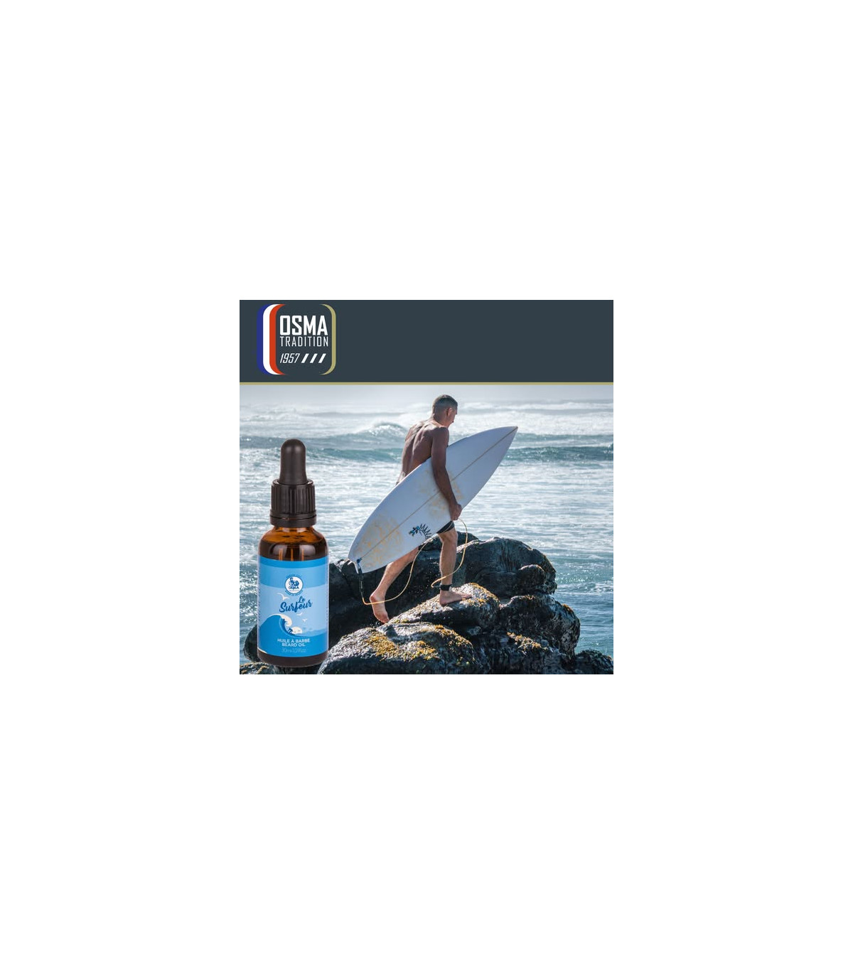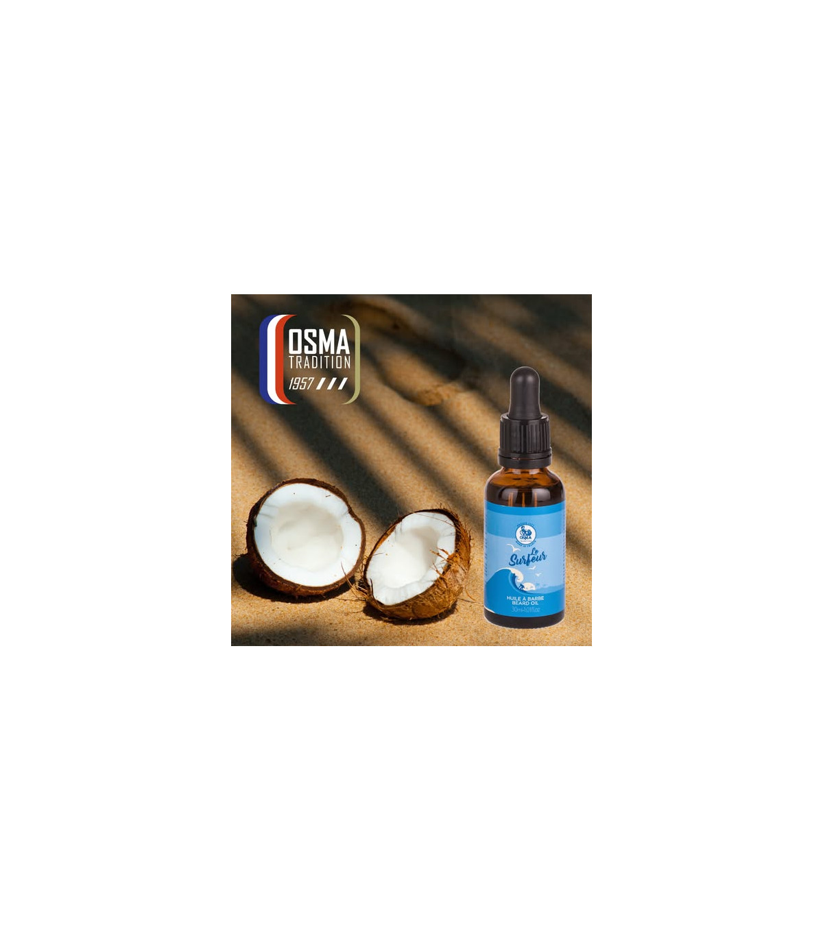 El Aceite para Barba Le Surfeur de Osma Tradition es mucho más que un cosmético masculino: es un gesto diario de cuidado natural con un aroma cálido y tropical que combina VAINILLA y COCO.