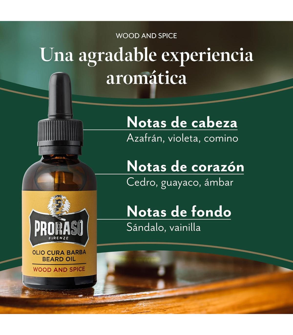 Este Aceite para Barba Madera y Especias de Proraso es uno de los más potentes de la gama por su aroma cálido, su capacidad de control y nutrición profunda, y por ser ideal para barbas largas que buscan orden y carácter.