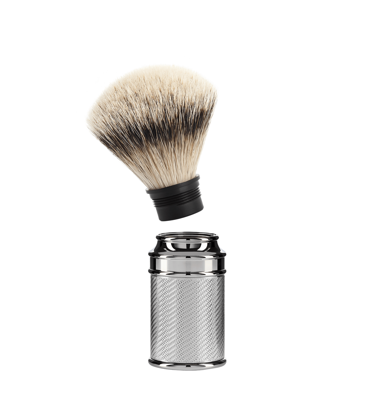Brocha de Afeitar Mühle Tejón Punta Plata Serie Traditional Cromada