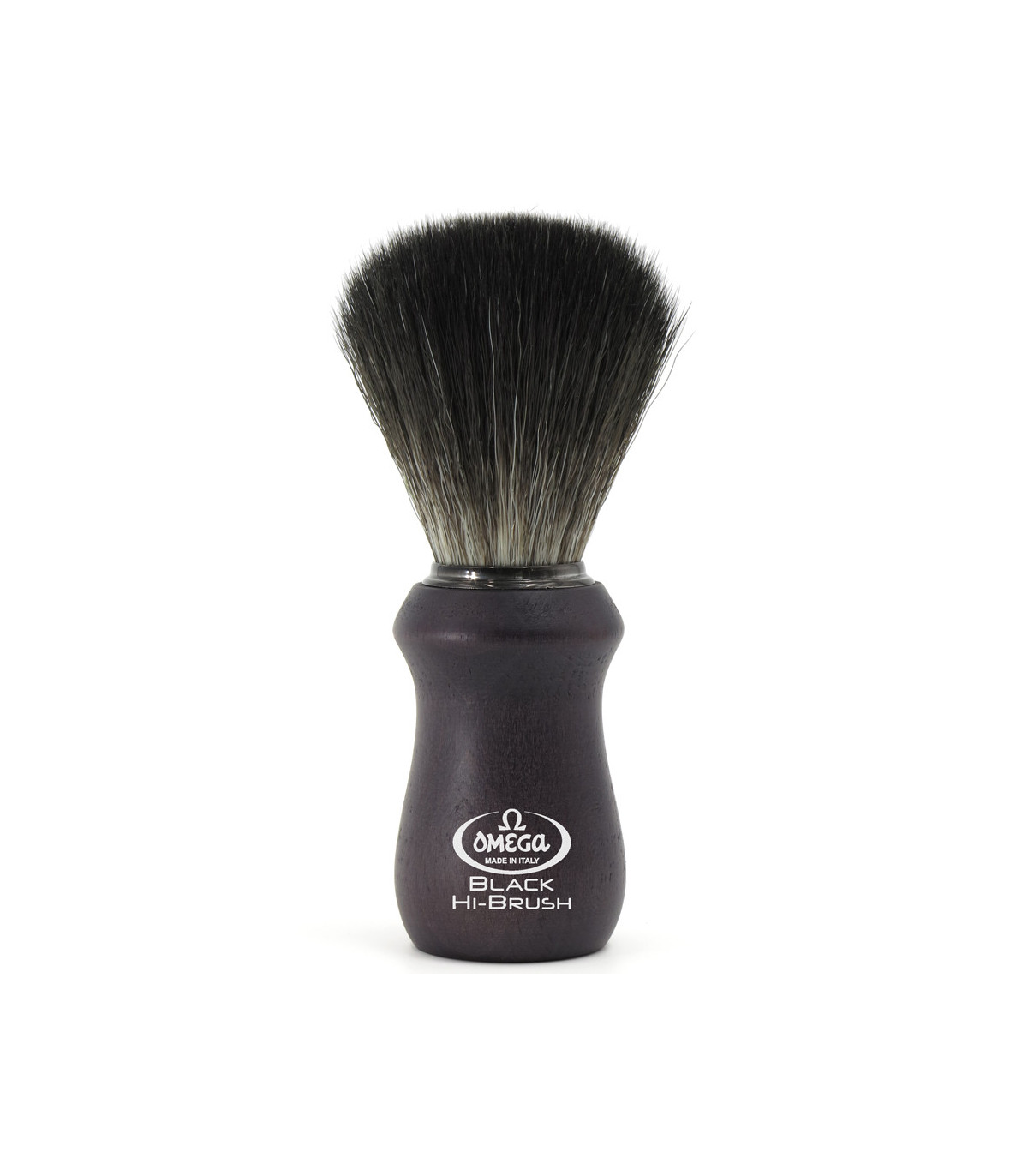 La Brocha de Afeitar Omega Hi-Brush efecto tejón negro con mango de madera de fresno negro es la elección ideal para quienes buscan combinar tradición y modernidad en el afeitado clásico.