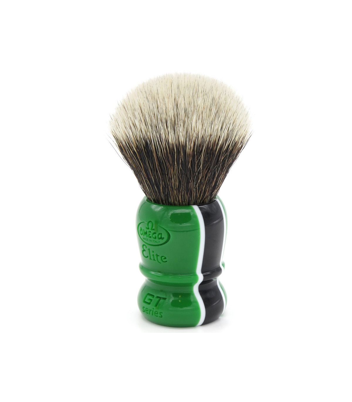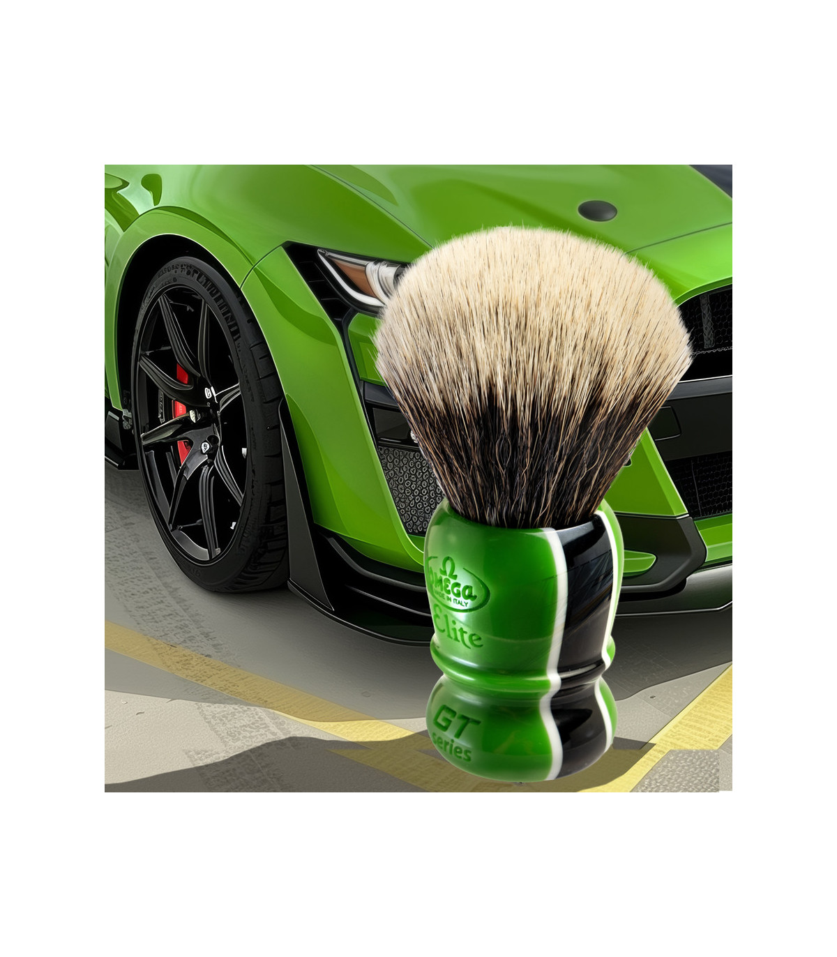 Inspirada en los colores legendarios del automovilismo, la Brocha de Afeitar Fibra Sintética 1918 Elite Serie GT Omega en verde está diseñada para hombres que valoran la potencia, el diseño y el rendimiento en cada afeitado.