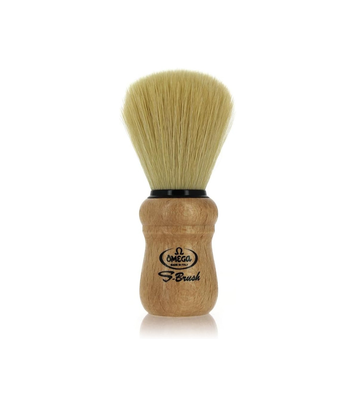 La Brocha de Afeitar Fibra Sintética S-Brush con Mango de Madera de Haya Omega combina suavidad, sostenibilidad y diseño clásico en un formato ideal para el afeitado tradicional.