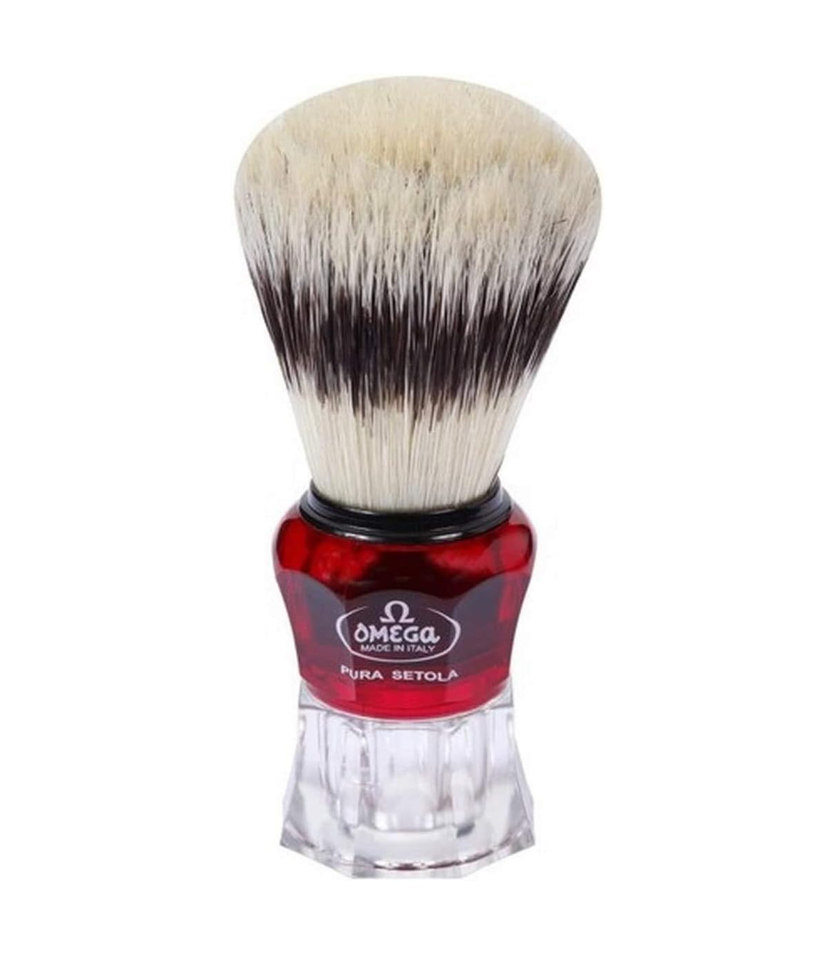 La Brocha de Afeitar Cerda Pura Metacrilato Rojo de Omega es una opción vibrante y funcional para quienes disfrutan del afeitado clásico con herramientas que realmente marcan la