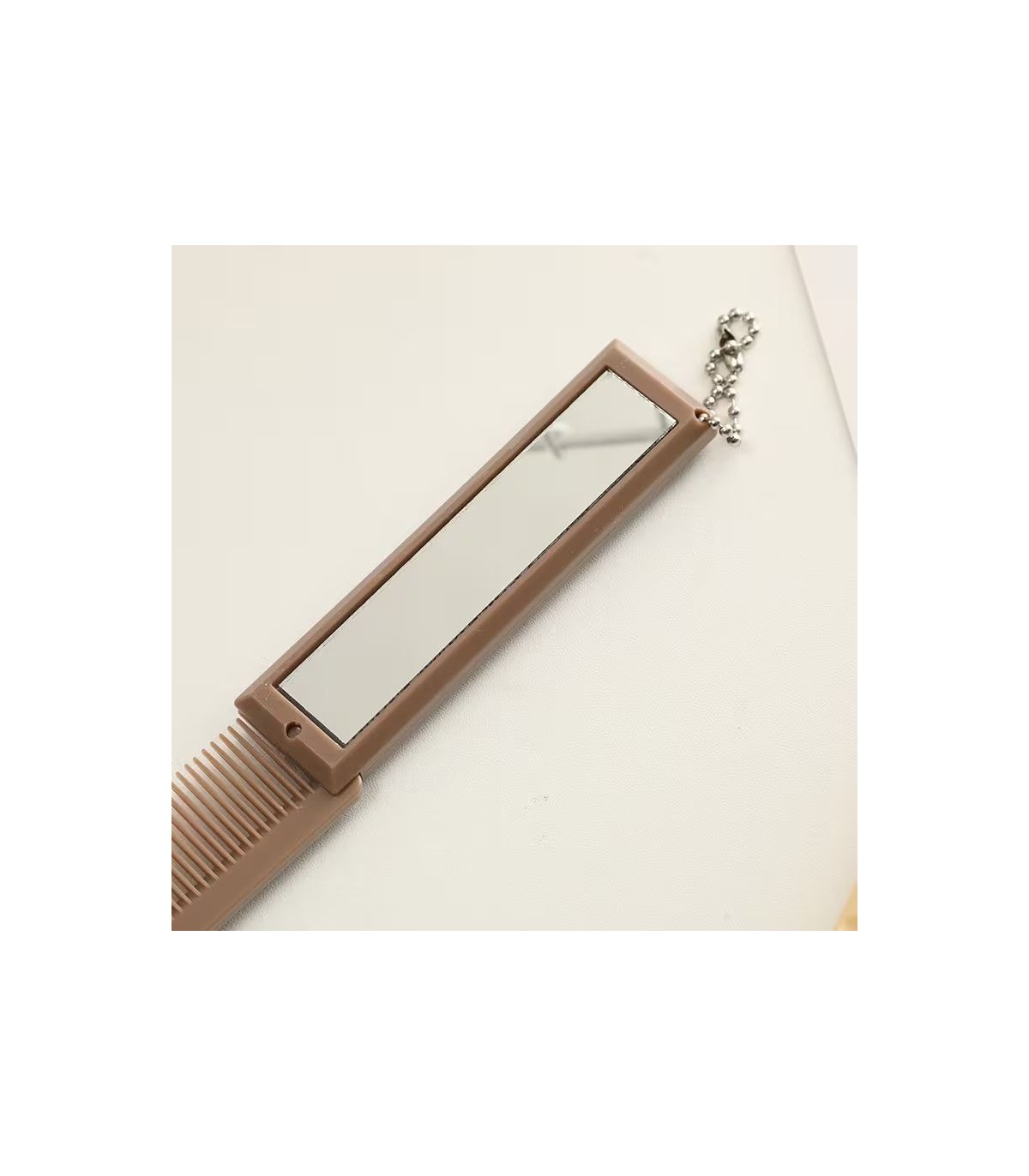 Su formato compacto y plegable es perfecto para llevarlo siempre encima sin darte cuenta. Y cuando llega el momento, lo tienes todo: peine y espejo en una sola pieza.