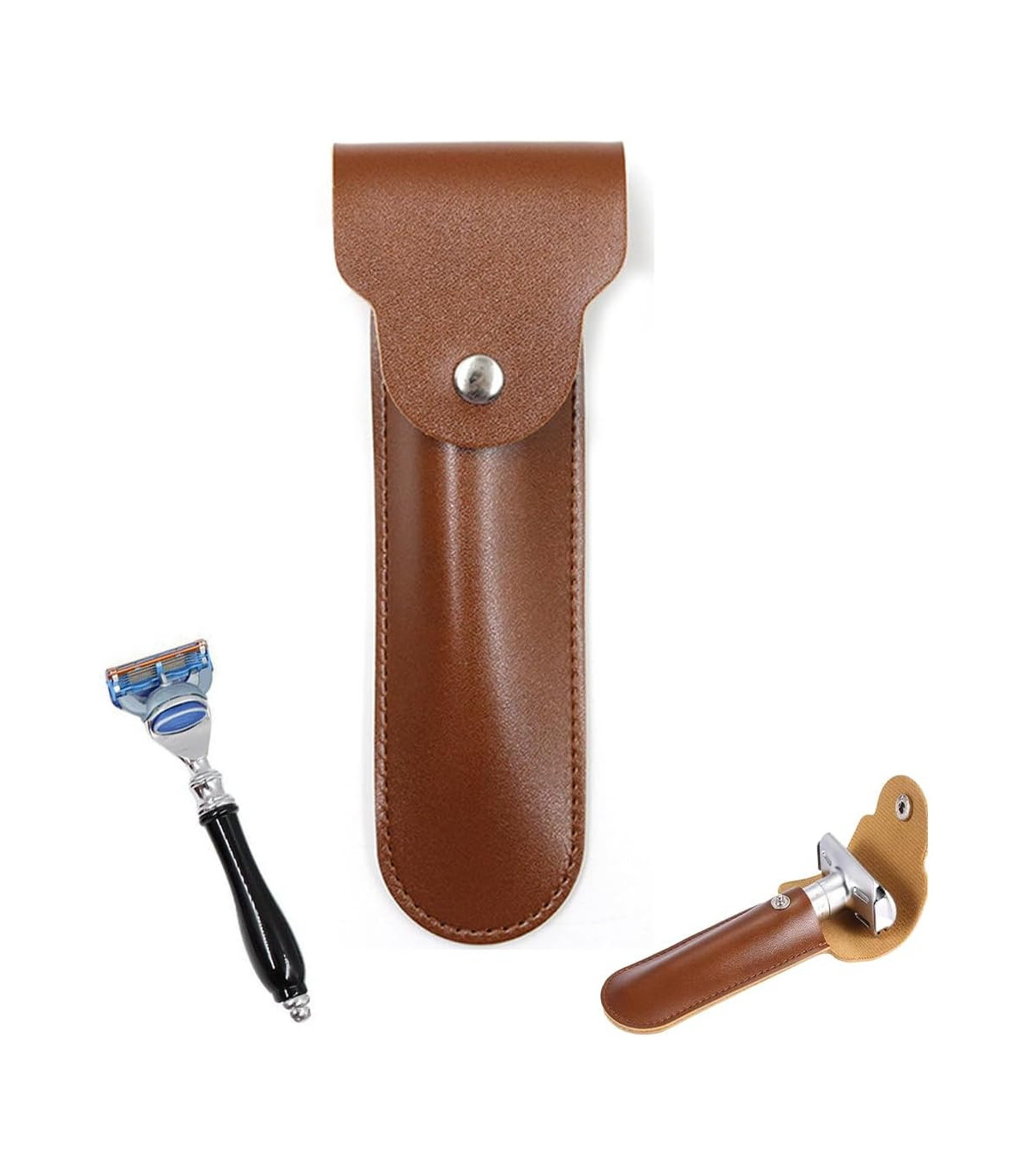 La Funda de Cuero Marrón SensaBien es el accesorio ideal para proteger tus maquinillas y navajas de afeitado con seguridad y estilo.