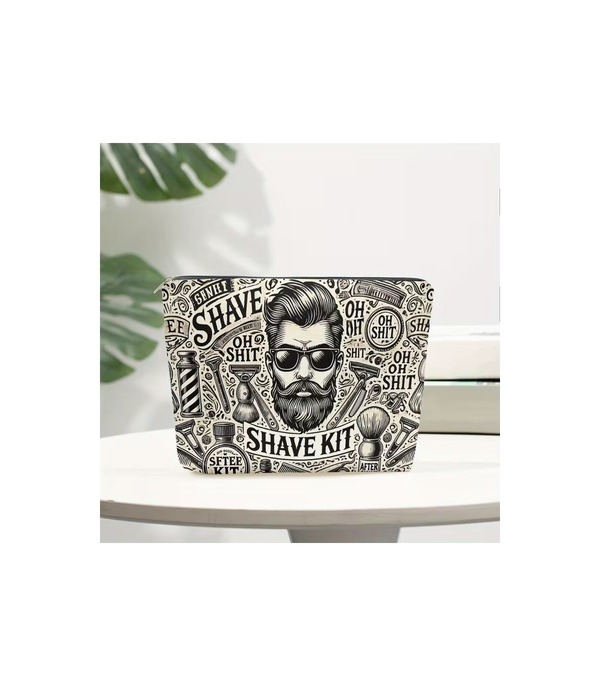 Su formato es práctico y versátil, ideal como neceser de afeitado, neceser de aseo o bolsa organizadora para productos de cuidado masculino. El diseño “Shave Kit” y los motivos de barbería lo convierten en una opción excelente para quienes buscan algo funcional, pero con un toque original y diferente.