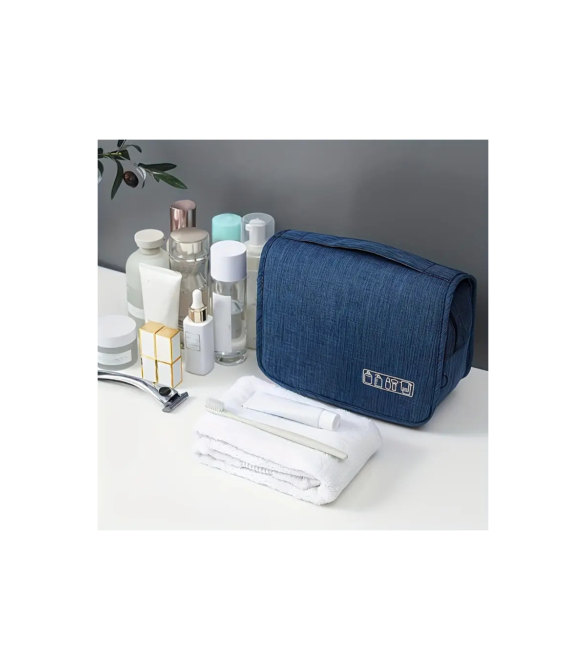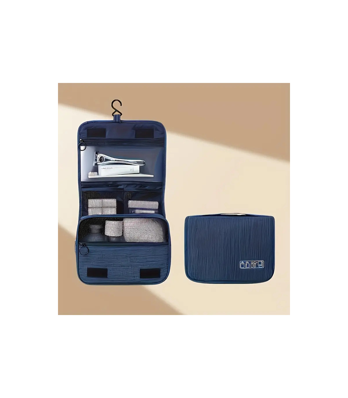 ❇️ Neceser de viaje azul con gancho para colgar
