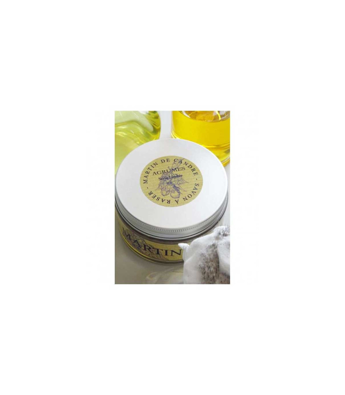 El Jabón de Afeitar Agrumes de Martin de Candre en formato de 200 g es un clásico moderno que combina eficacia, frescura y sostenibilidad.