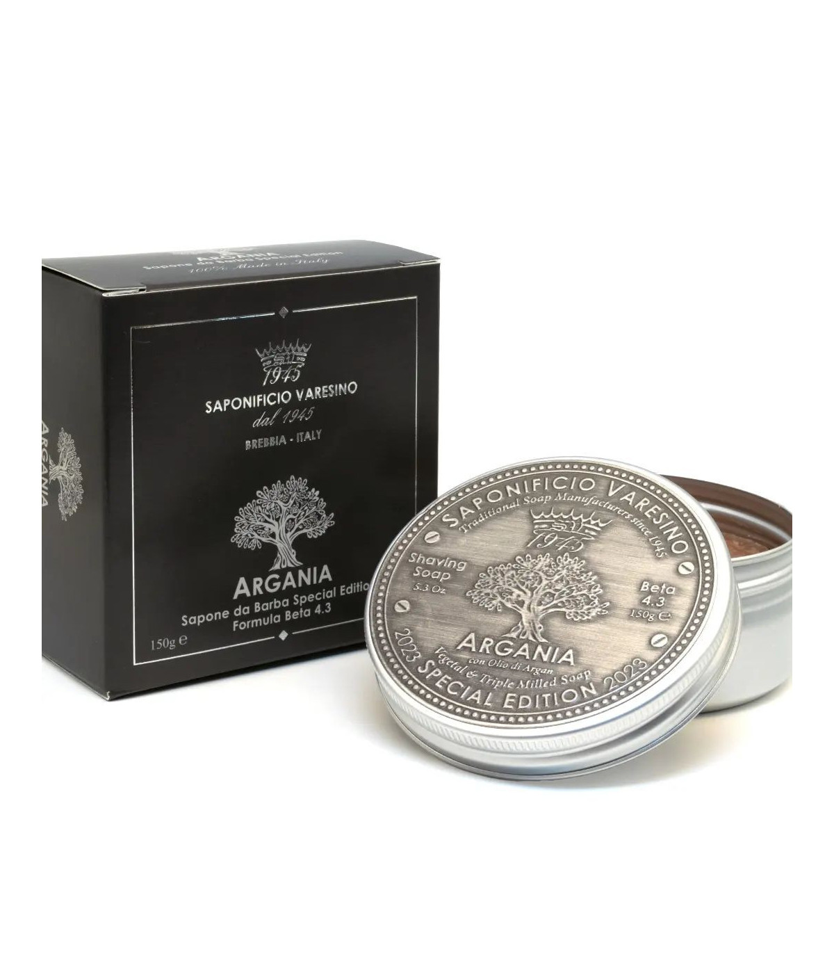 Jabón de Afeitar Argania de Saponificio Varesino. Elaborado con métodos tradicionales y fórmulas innovadoras, garantiza un deslizamiento suave y una protección óptima para tu piel.