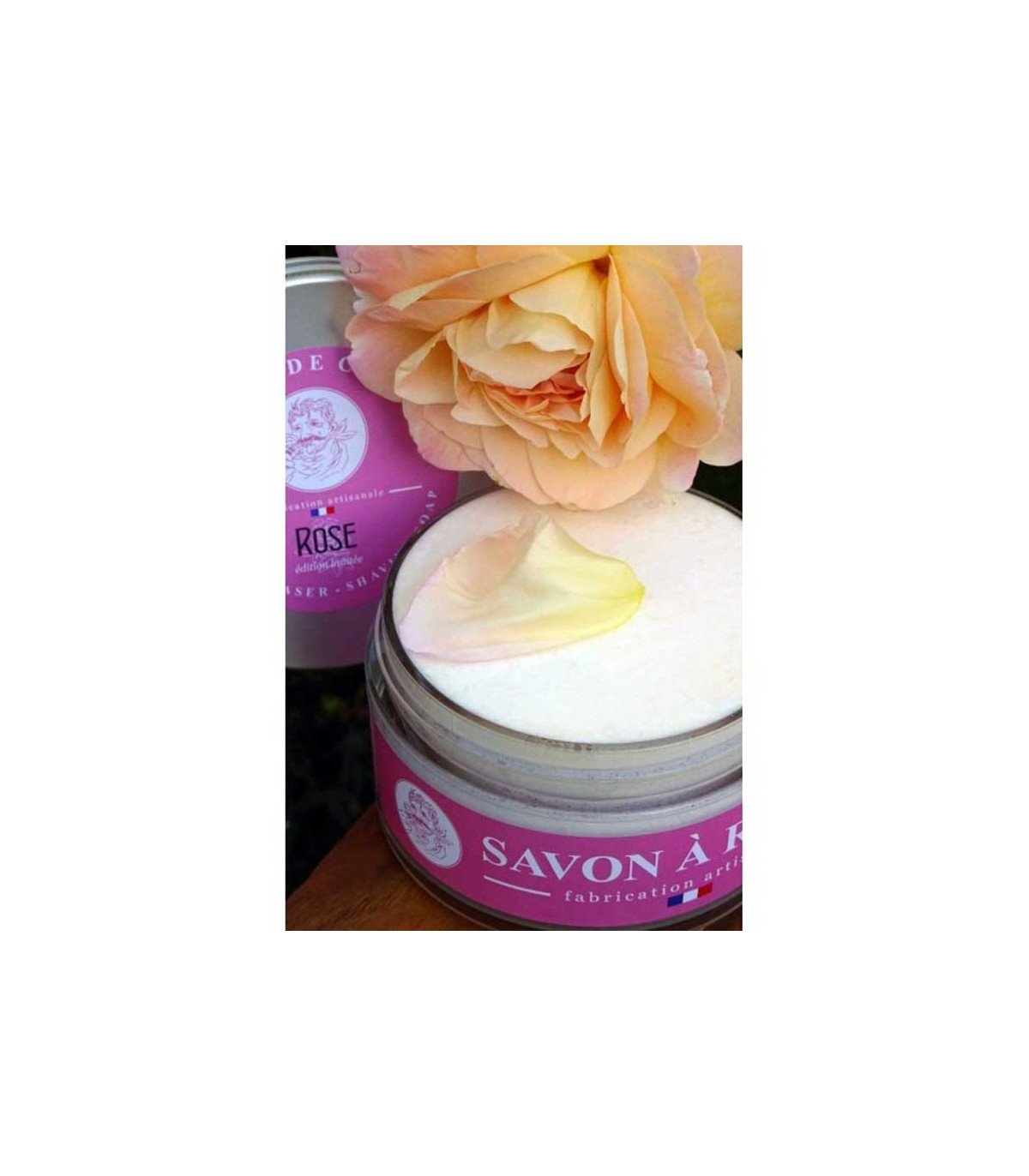 ☑️ Espuma cremosa, protectora y refinada con aceites esenciales de rosa, ylang ylang y benjuí
