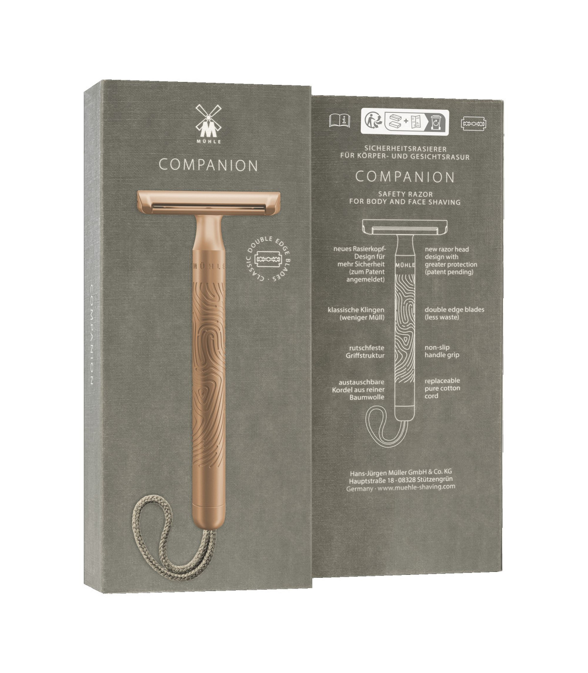 La Mühle Companion es una maquinilla de afeitar de seguridad revolucionaria, diseñada para ser utilizada cómodamente tanto por hombres como por mujeres.