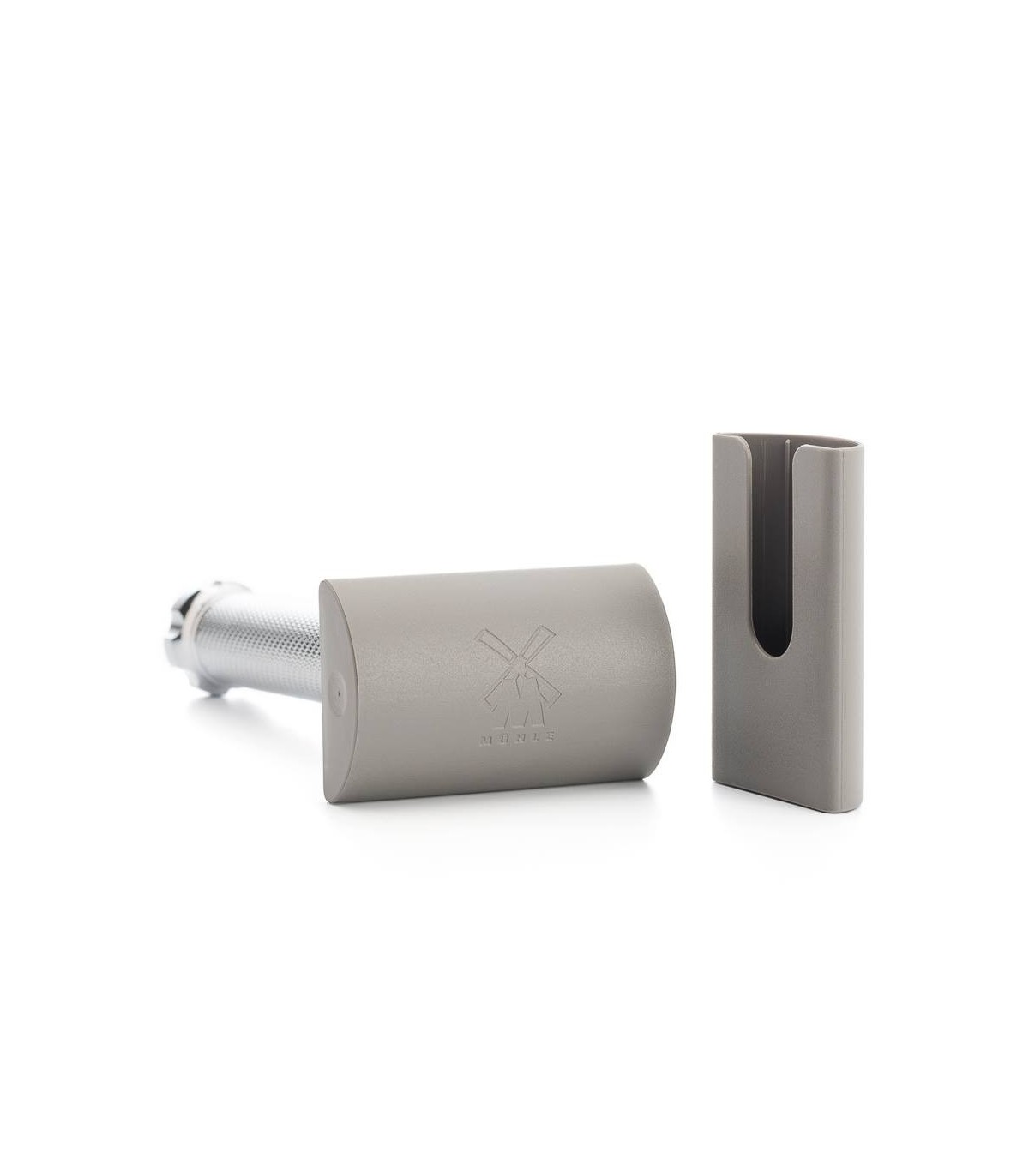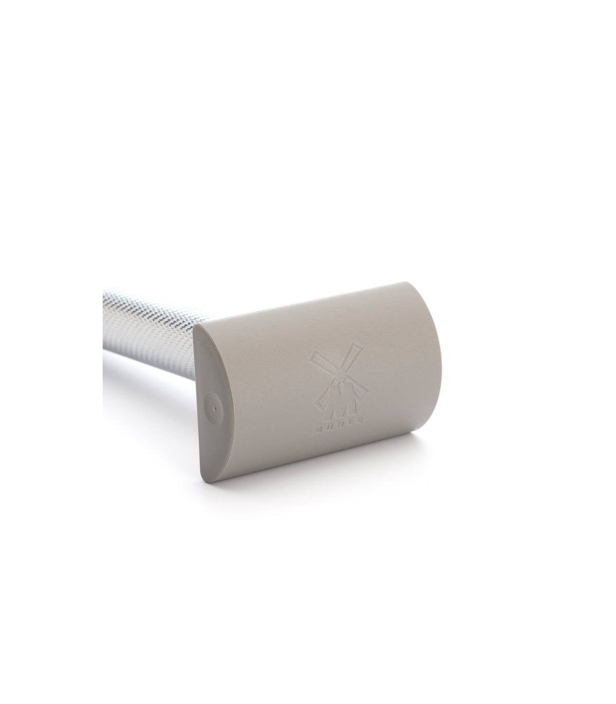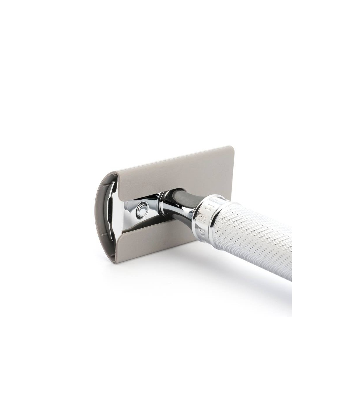El protector de cuchilla MÜHLE es un accesorio diseñado para proteger el cabezal de tu maquinilla de afeitar clásica durante el almacenamiento o el transporte.