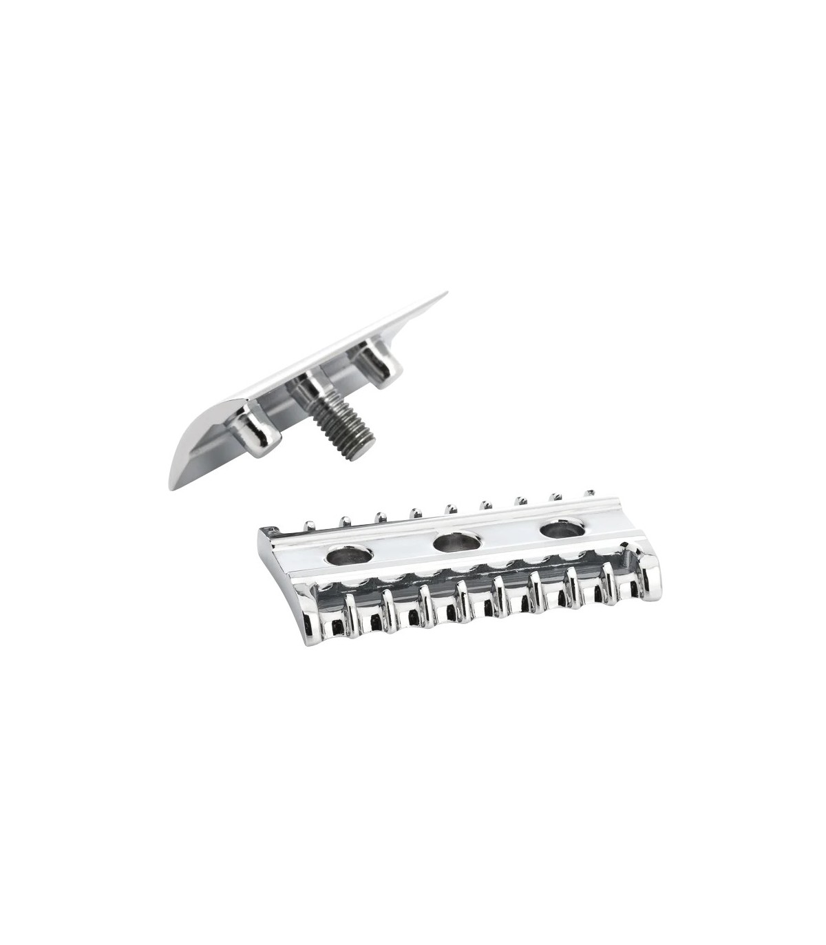 El recambio de cabezal MÜHLE de peine abierto está diseñado para sustituir la parte superior de la maquinilla clásica, ofreciendo un afeitado más directo y eficaz.