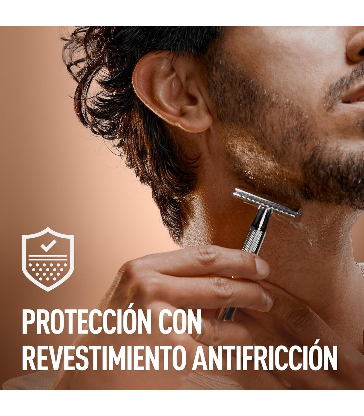 Gracias a su revestimiento antifricción, la maquinilla se desliza con suavidad, ayudando a reducir la sensación de arrastre y mejorando la experiencia de afeitado, incluso en barbas densas o piel delicada. La superficie del mango presenta una textura rugosa antideslizante, que asegura un agarre firme incluso con las manos mojadas o enjabonadas.