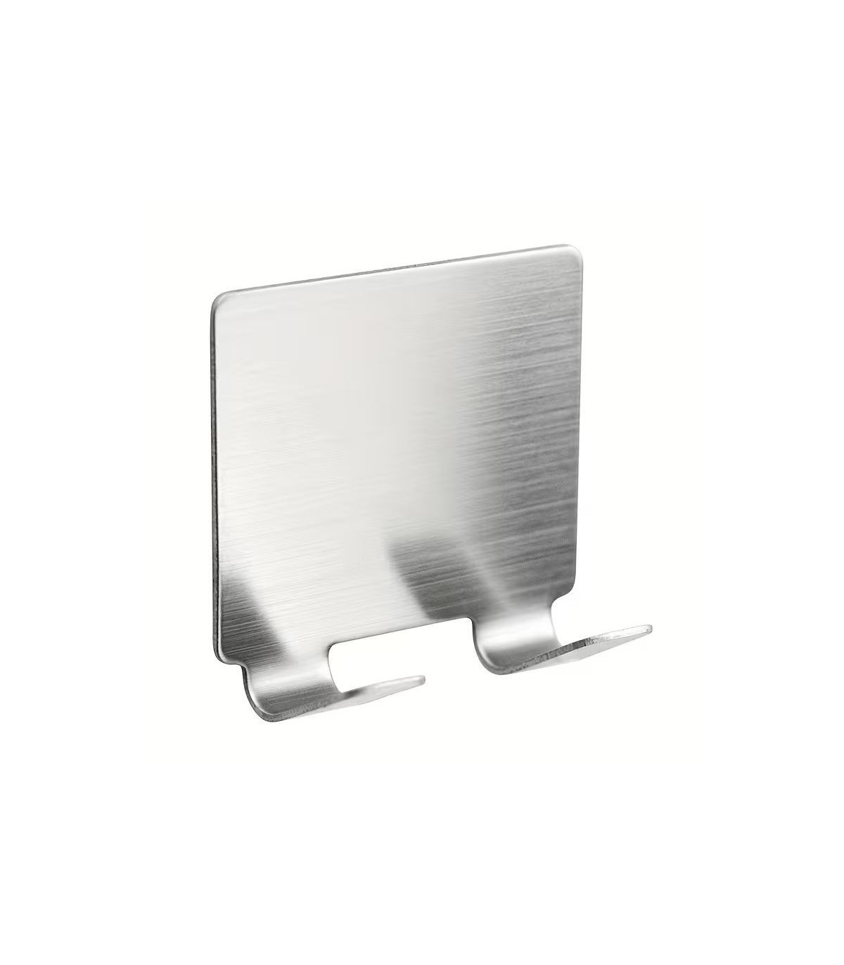 Soporte adhesivo cromado para fijar en baldosas, ideal para colgar la maquinilla, facilitar el secado y ayudar a prevenir la corrosión.