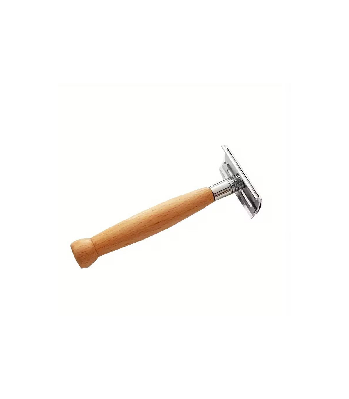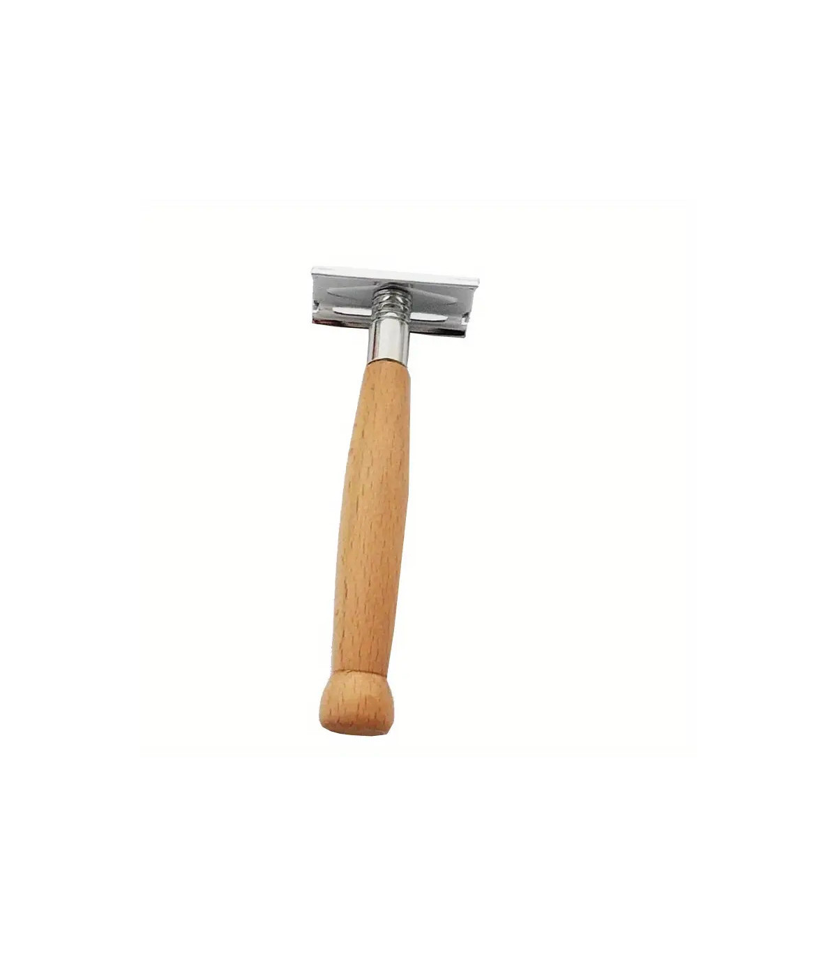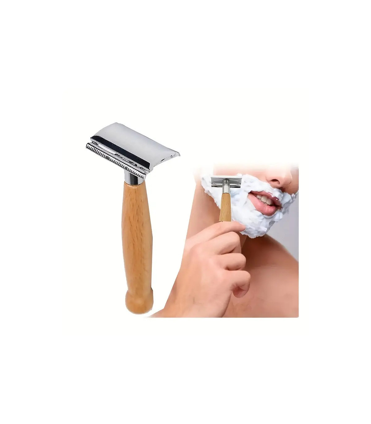 El mango de madera de haya natural no solo aporta un toque distintivo y elegante, sino que también asegura un agarre firme y cómodo, ideal para quienes buscan control y precisión en cada afeitado.