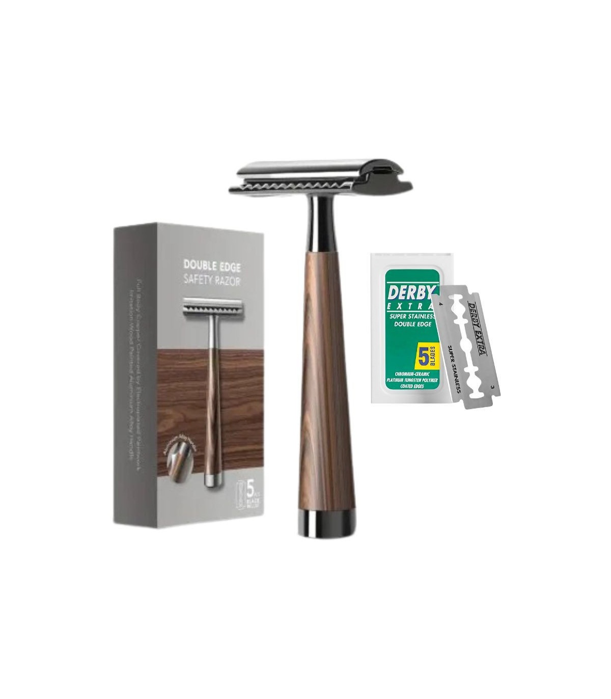 Viene lista para usar: incluye 5 cuchillas DERBY EXTRA de doble filo y se presenta en caja elegante (también perfecta para regalar). Además, su diseño permite mantenerla de pie, manteniendo el cabezal ventilado entre usos.