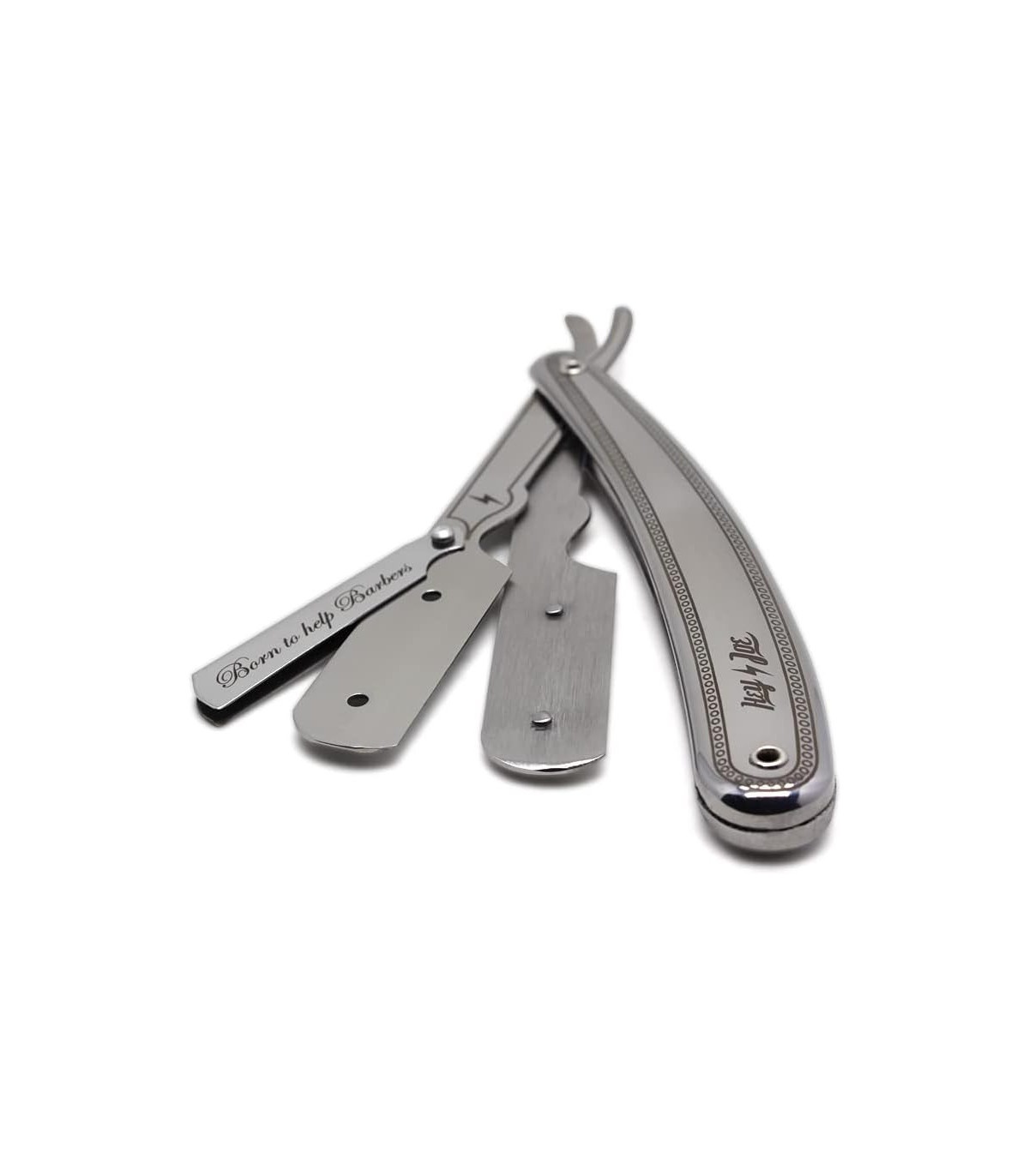 Funciona con cuchillas partidas intercambiables, lo que garantiza un filo siempre limpio, seguro e higiénico. Su sistema de cierre tipo clip sujeta la hoja con firmeza y asegura un afeitado alineado y estable.