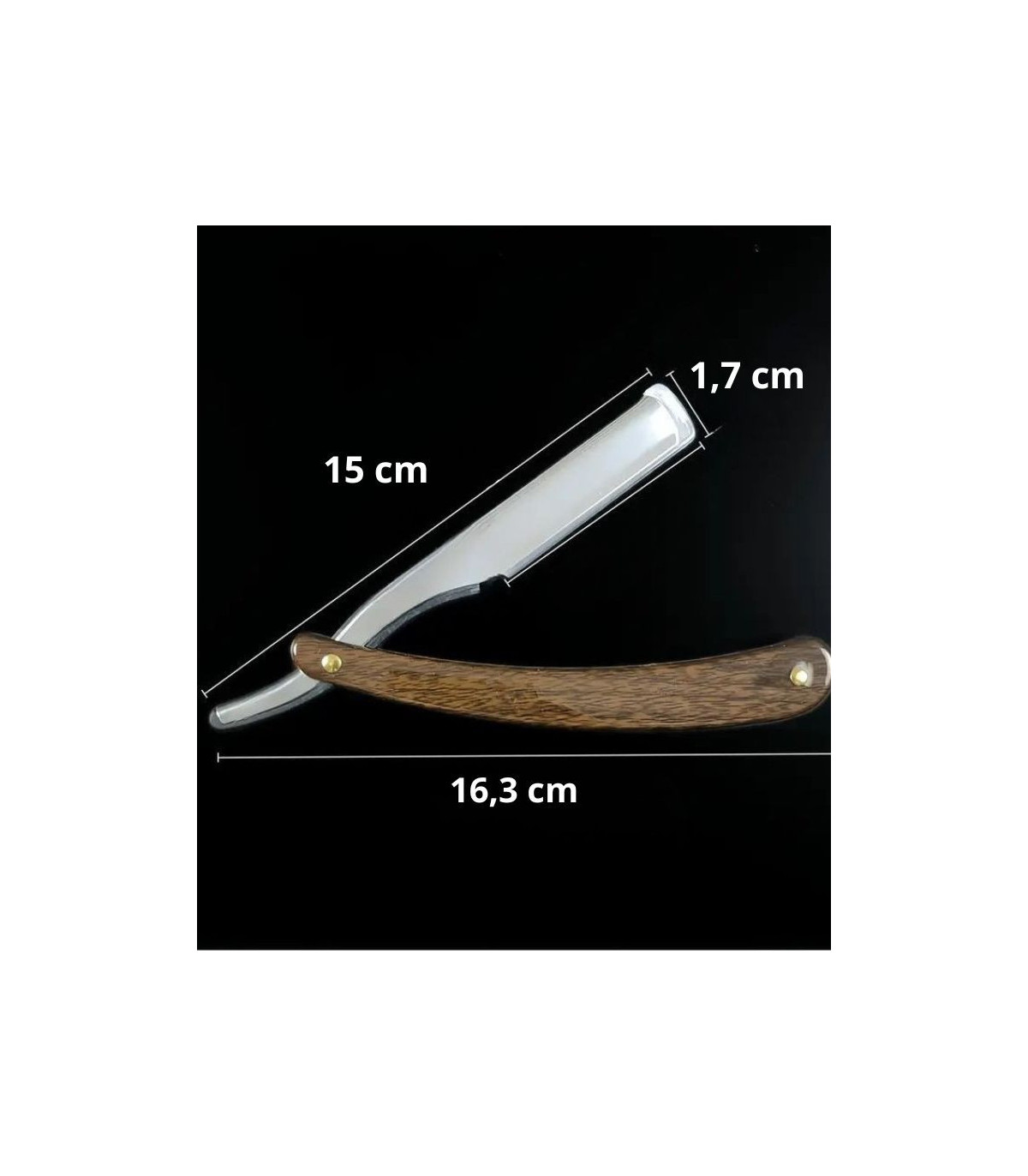 Medidas: Largo de la navaja: 16,3 cm. Largo de la hoja: 15 cm. Ancho de la hoja: 1,7 cm. (Incluye una cajita con 10 hojas)