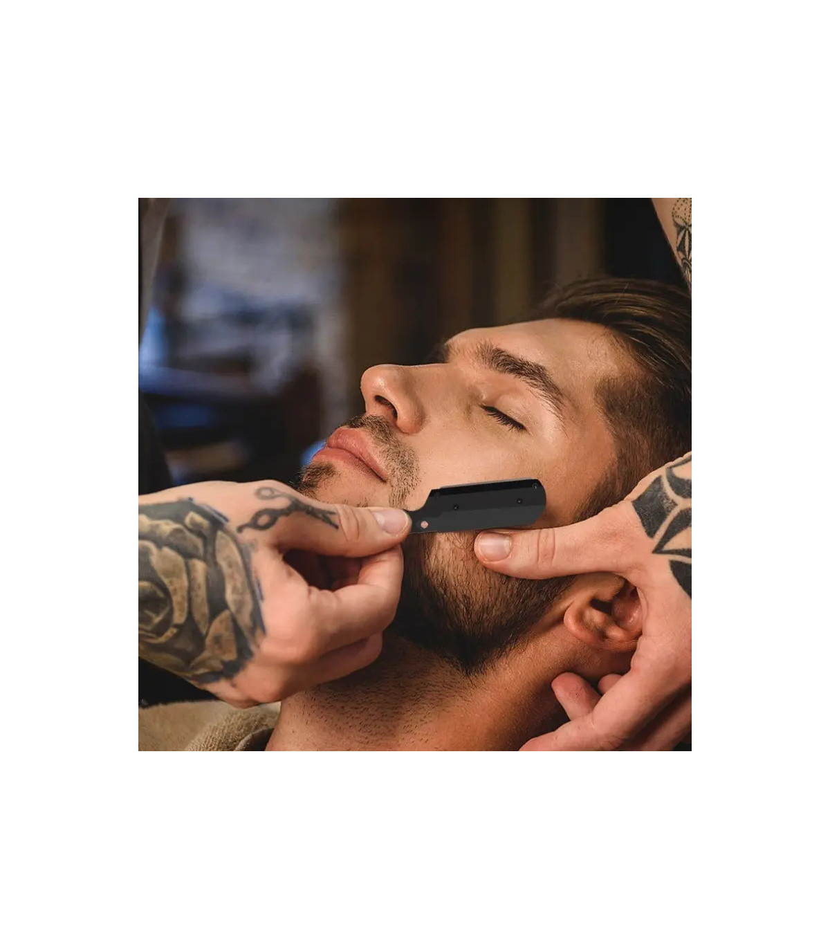 Ideal para definir contornos, perfilar patillas o mantener un afeitado apurado y elegante, esta navaja combina un estilo moderno con la tradición del afeitado clásico.