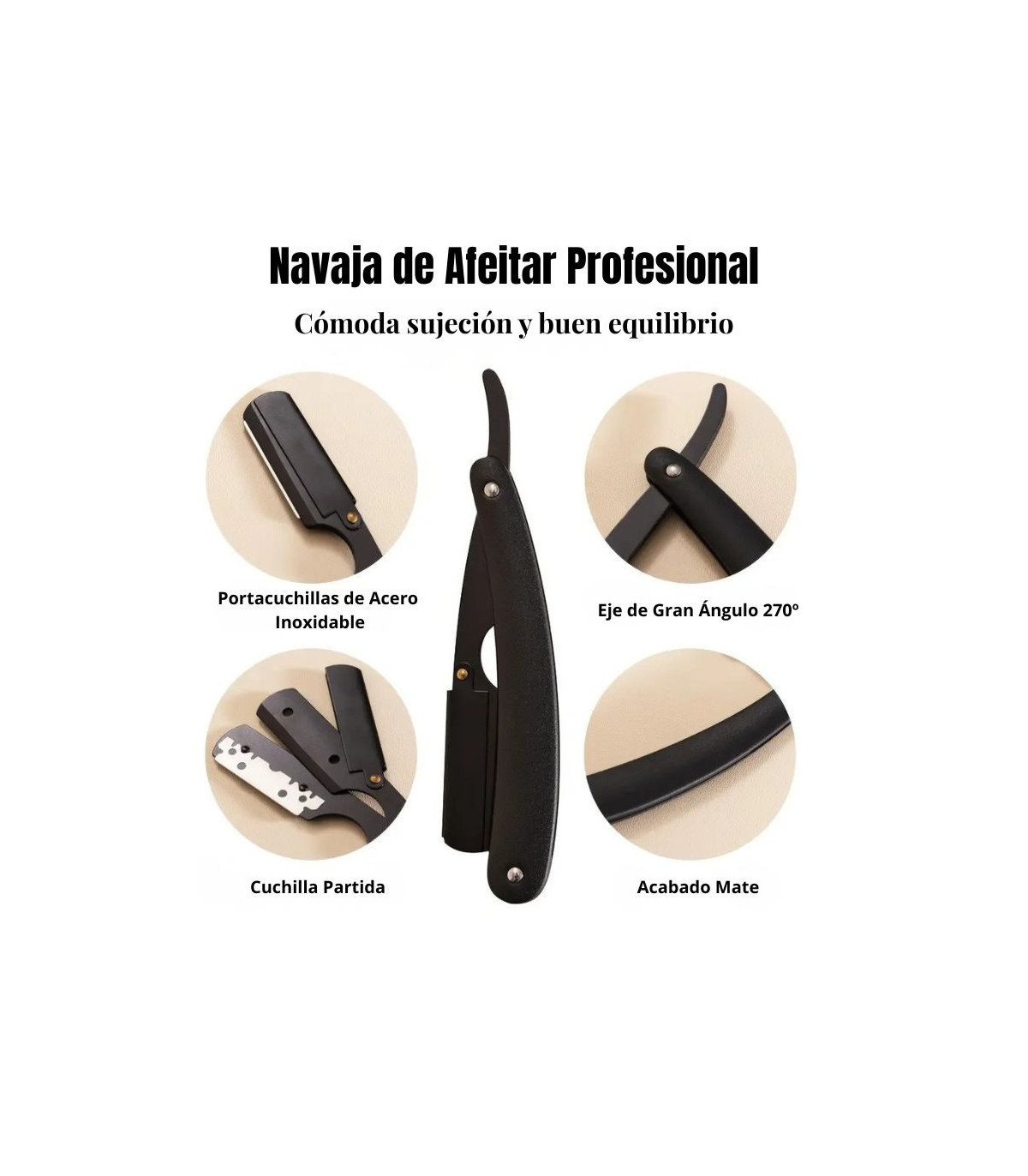 La Navaja de Hoja Intercambiable Barbero Negra Mate SensaBien es una pieza diseñada para quienes buscan precisión, seguridad y elegancia en su afeitado clásico.