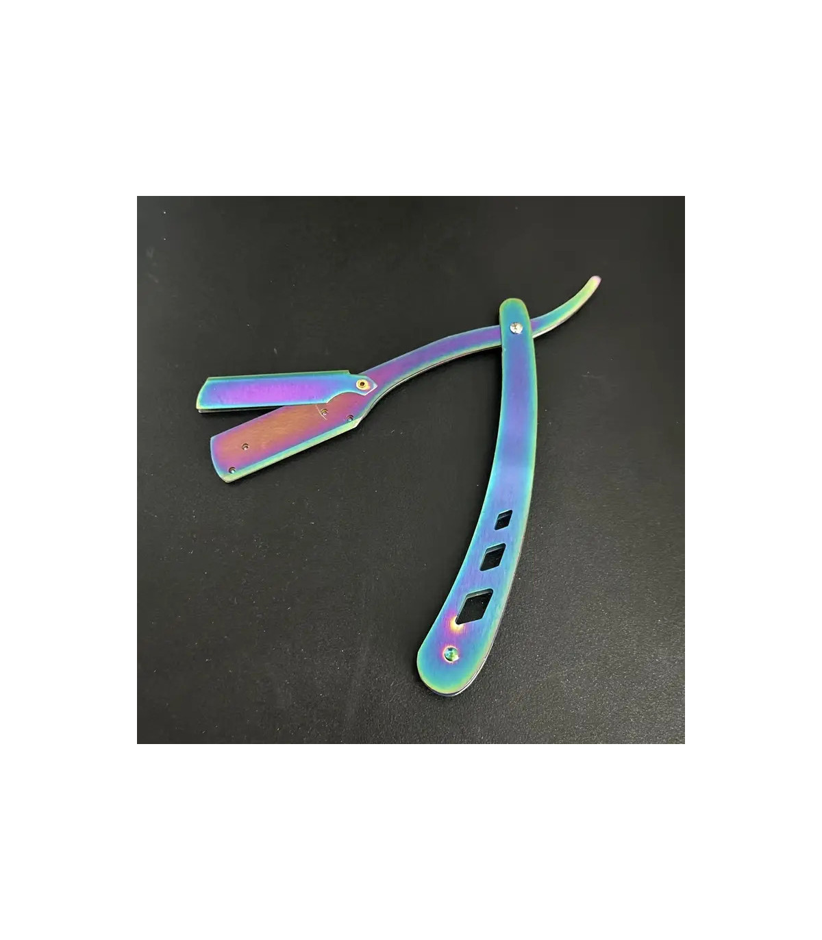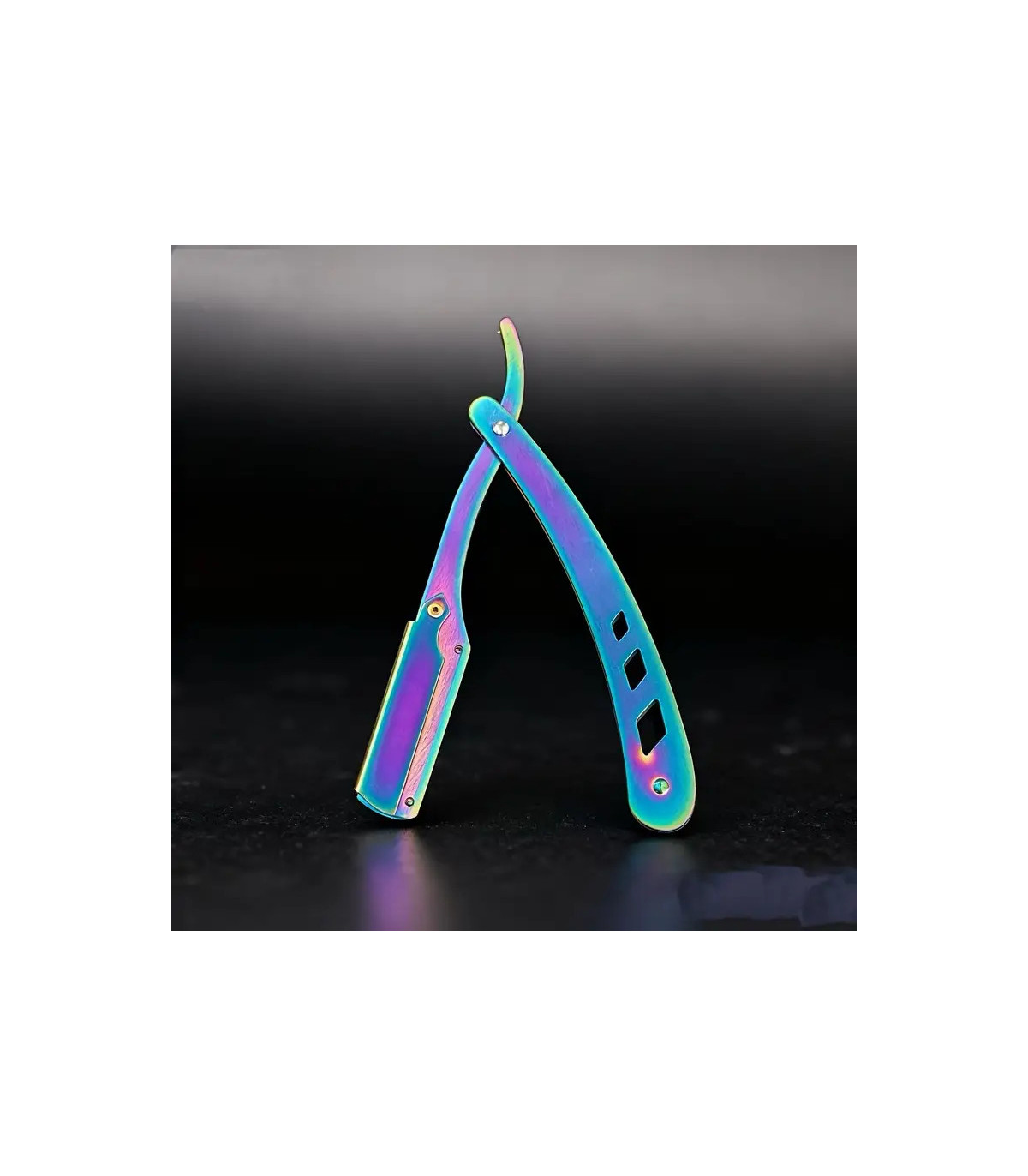 La Navaja de Afeitar Plegable Arcoíris SensaBien redefine el afeitado clásico con un toque vibrante y moderno.