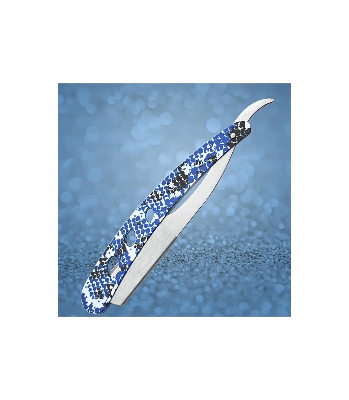 Una navaja pensada para quienes disfrutan del ritual del afeitado clásico, pero valoran los detalles modernos y el estilo propio. Su aspecto llamativo y su estructura resistente hacen de esta herramienta una opción ideal para quienes buscan funcionalidad con personalidad.