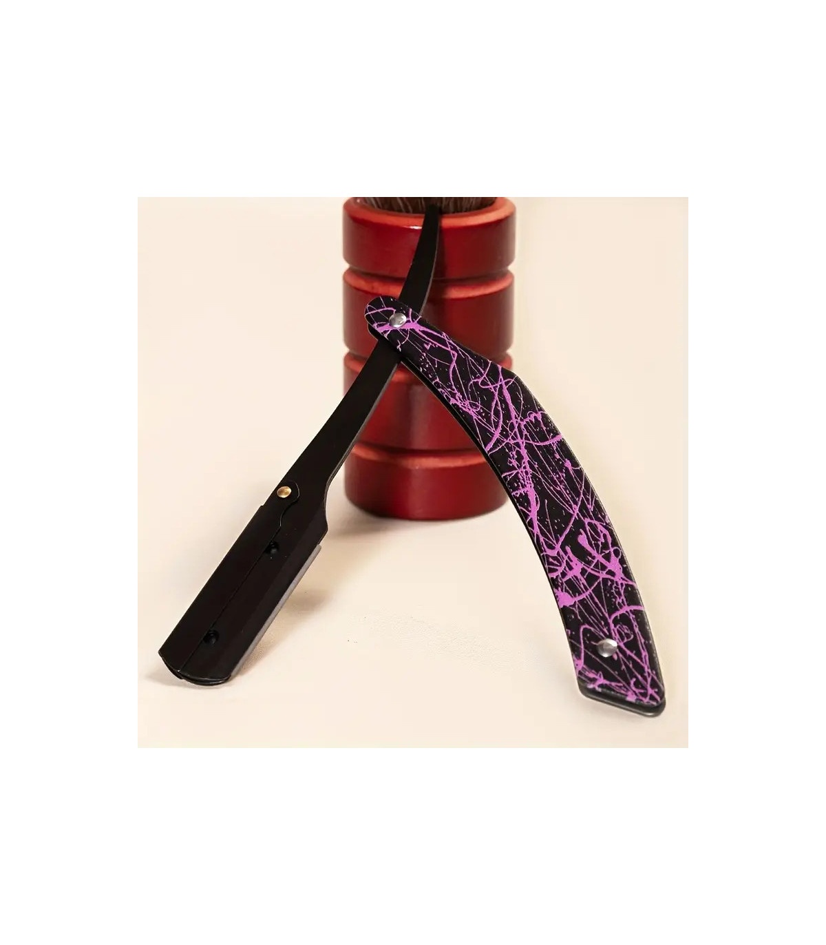 La Navaja de Afeitar Plegable Galaxy Violeta SensaBien rompe con lo convencional y lleva el afeitado clásico a un nuevo nivel de estilo.