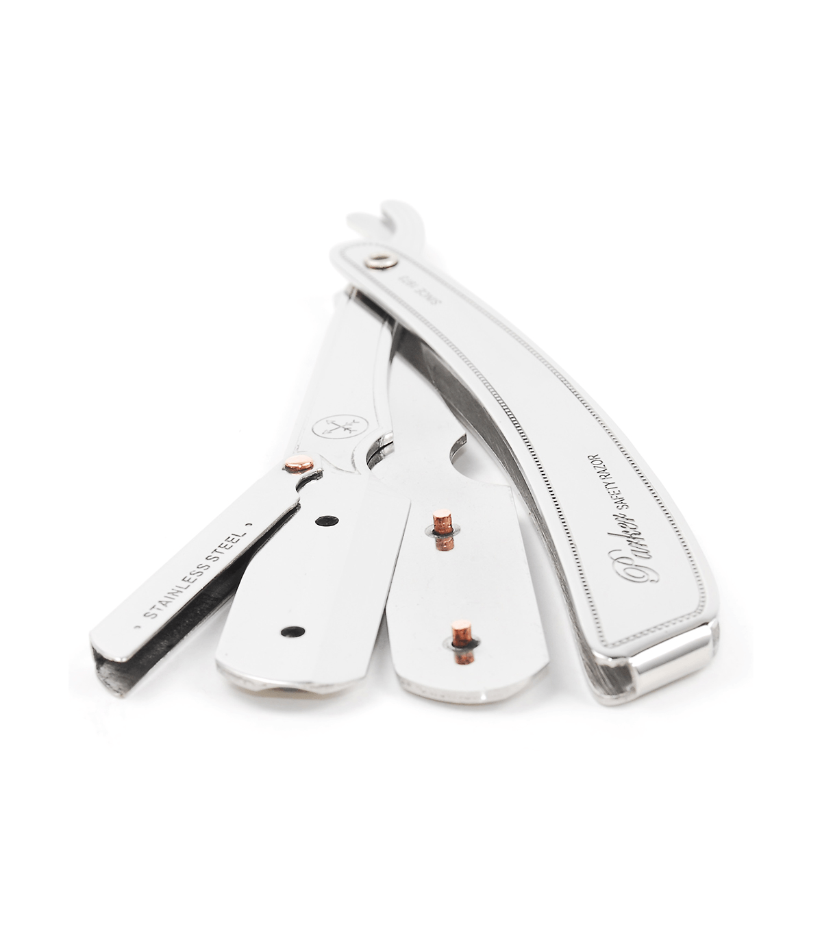 Sistema de Cierre Seguro: Equipado con un cierre de alta seguridad, la navaja asegura que las cuchillas se mantengan firmemente en su lugar, minimizando el riesgo de deslizamientos y ofreciendo un afeitado limpio y apurado. Es compatible con cuchillas de doble filo partidas por la mitad, facilitando un cambio rápido y económico