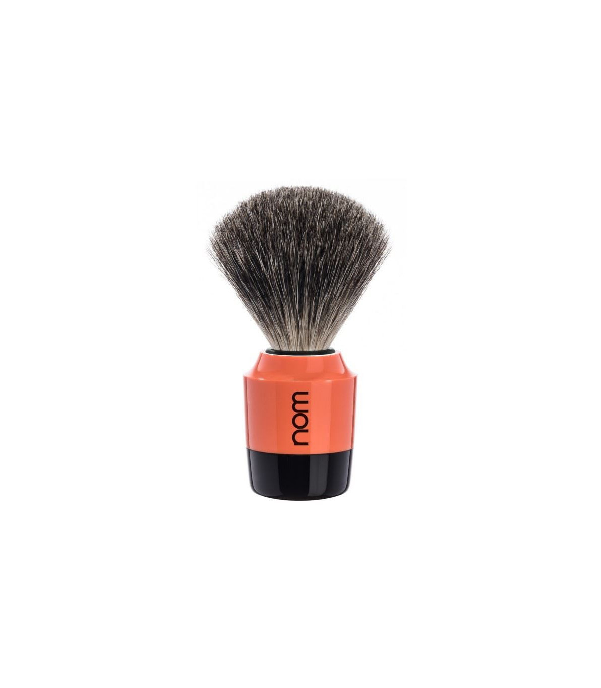 La Brocha de Tejón Puro Nom Serie Marten en coral/negro aporta el equilibrio perfecto entre suavidad y firmeza. Su pelo de tejón crea una espuma densa en pocos movimientos, ideal para un afeitado suave y controlado. El mango coral con acabado ergonómico no solo es cómodo, sino que destaca por su estilo atrevido.