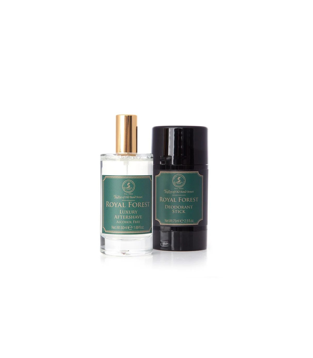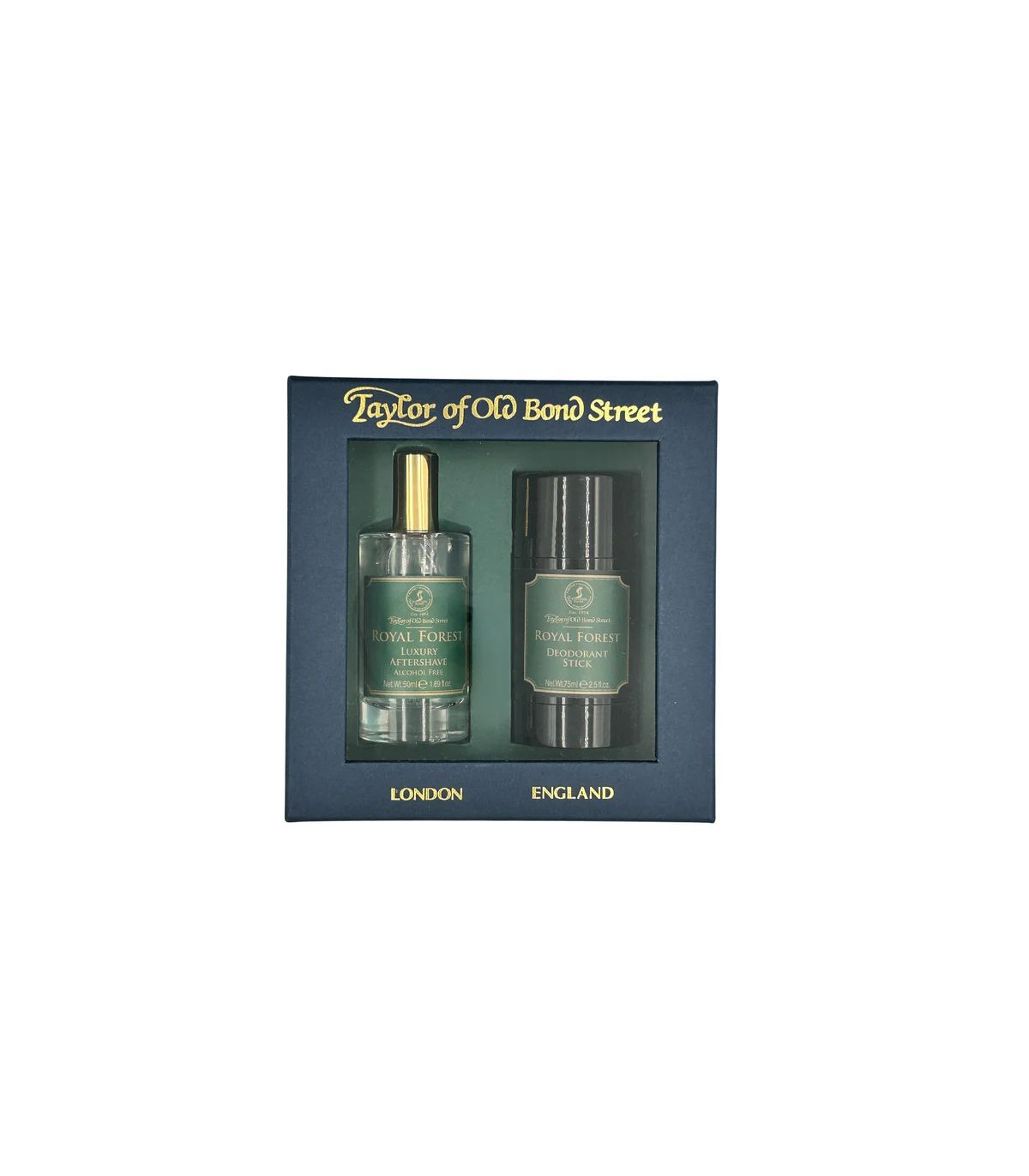 Sumérgete en el frescor y la elegancia del bosque con este pack regalo de la colección Royal Forest. Taylor of Old Bond Street ha reunido dos de sus productos más distinguidos en una presentación pensada para sorprender: una loción after shave sin alcohol y un desodorante en stick sin aluminio, ambos con una fragancia vibrante y verde.