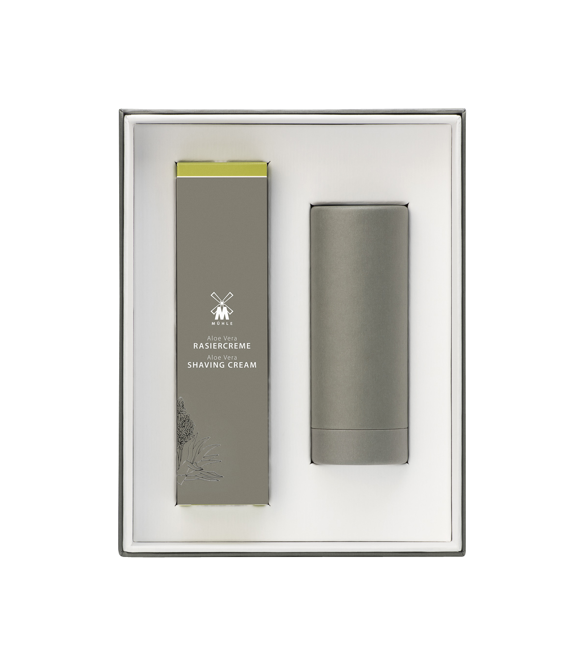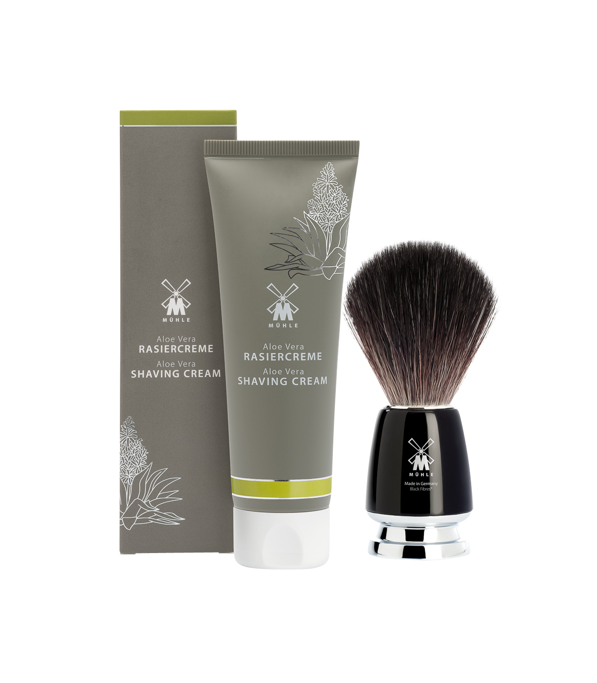Set de Afeitado MÜHLE Crema Alóe Vera 75ml + Brocha Fibra Negra Rytmo