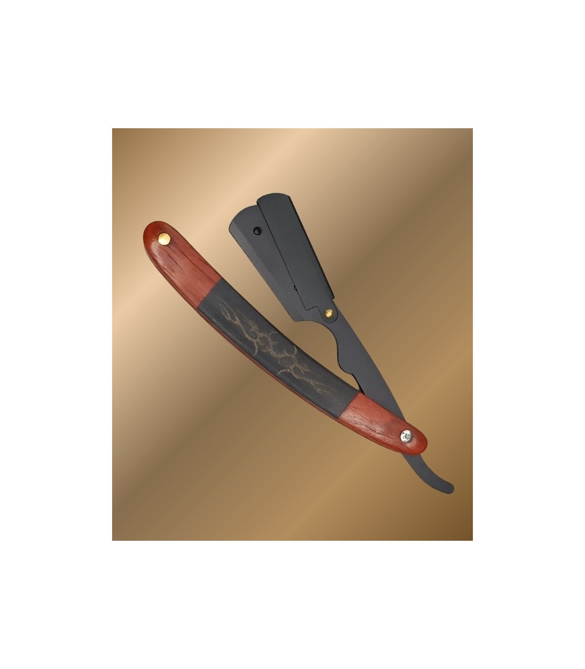 La navaja de afeitar plegable con mango de palisandro tallado es la pieza protagonista del set. La madera de palisandro aporta calidez, buen agarre y un diseño único gracias a su grabado decorativo. Utiliza cuchillas partidas, lo que garantiza higiene, facilidad de recambio y un afeitado limpio tanto para contornos como para rasurado completo.