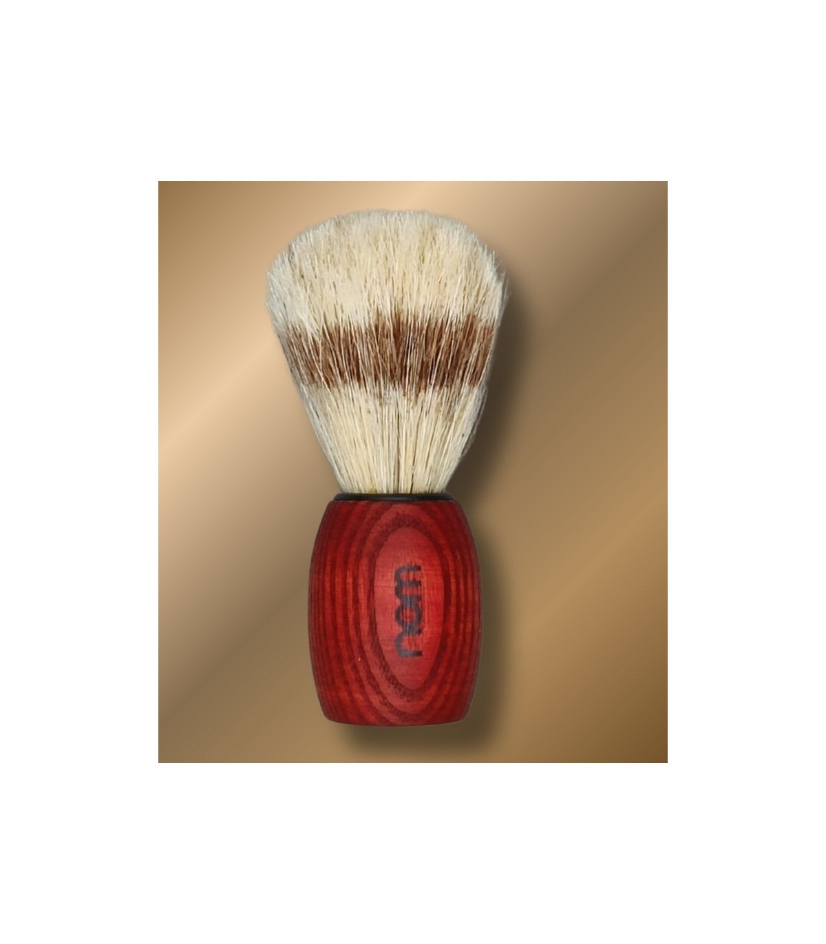 La brocha Nom de cerda pura, fabricada en Alemania, ofrece un equilibrio perfecto entre firmeza y confort. Sus cerdas ayudan a levantar el vello y a crear una espuma densa, mientras que el mango de fresno rojo aporta ergonomía y un contraste visual muy atractivo con la navaja. Ideal para jabones y cremas de afeitar tradicionales.