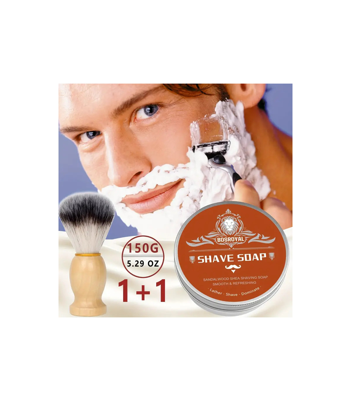 El Set Jabón de Afeitar Sándalo 150g y Brocha de Afeitar con Mango de Madera SensaBien está diseñado para quienes buscan un afeitado clásico lleno de aroma, elegancia y cuidado para la piel.