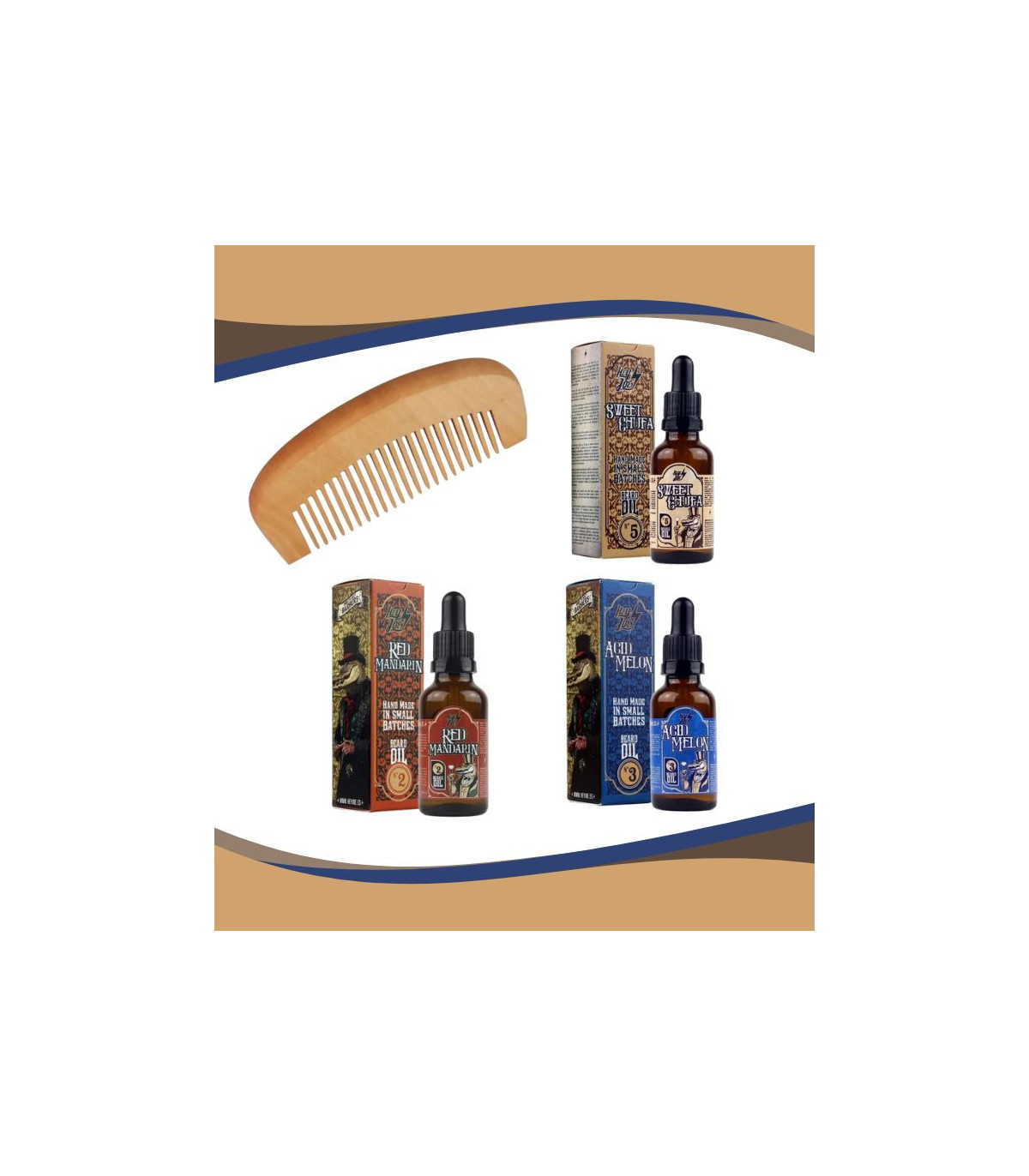 ✴️ Incluye: 3 aceites para barba Hey Joe (Acid Melón, Sweet Chufa y Red Mandarin) + Peine de madera de caoba de regalo