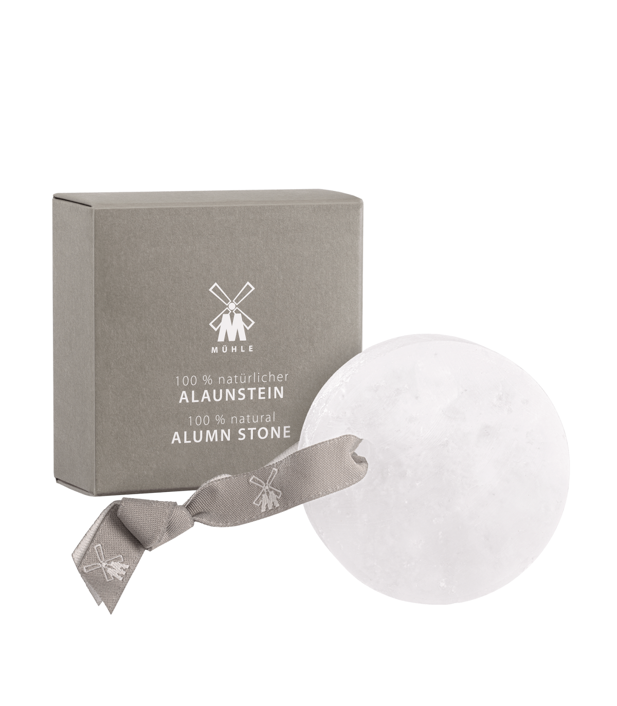 La Piedra de Alumbre de 100g de MÜHLE es un básico atemporal del afeitado clásico. Elaborada a partir de un mineral natural compuesto de sal y potasio, esta piedra es altamente eficaz para tratar los pequeños cortes provocados por el paso de la cuchilla, gracias a su potente acción astringente, cicatrizante y antiinflamatoria.