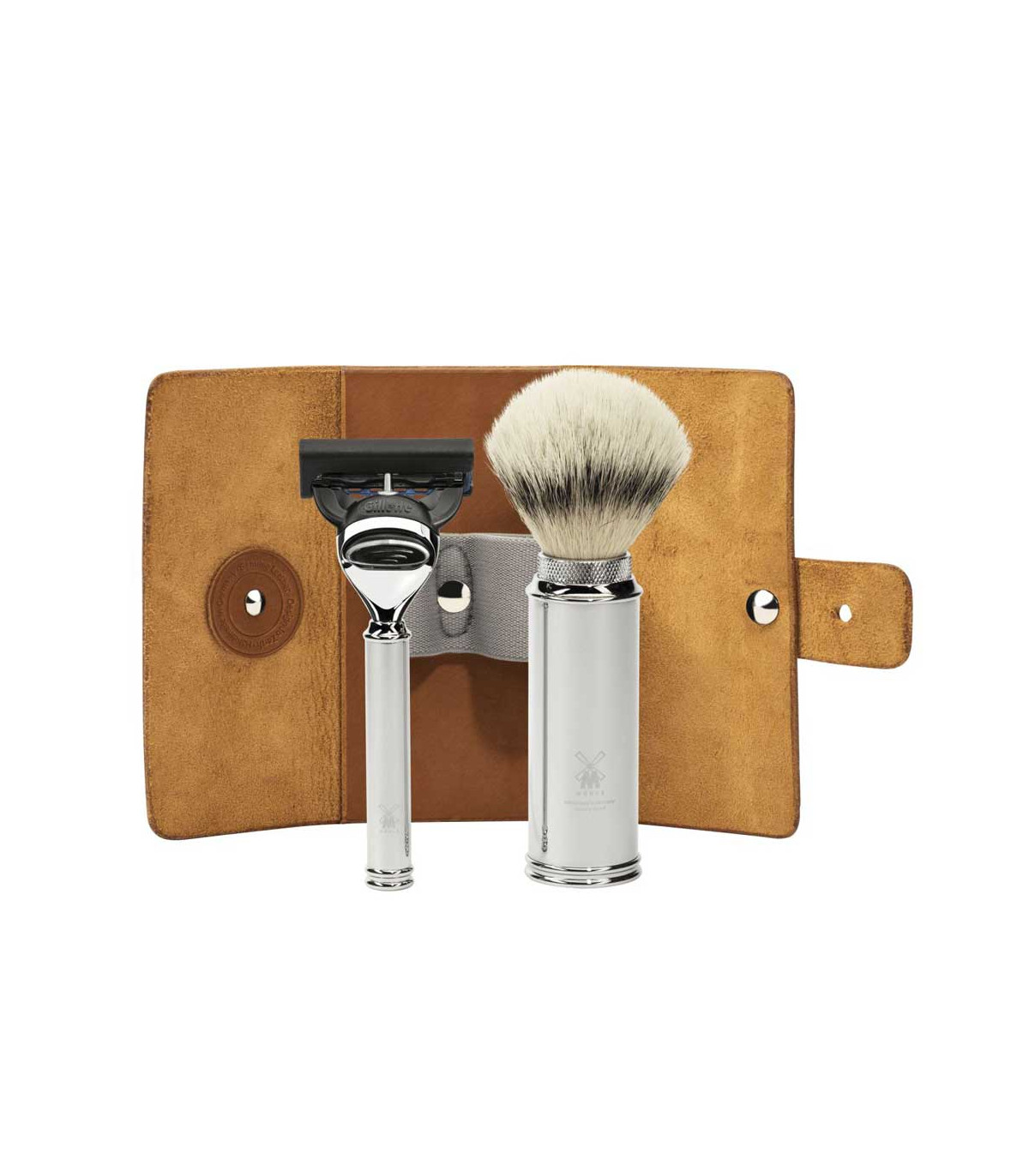 Estuche de Viaje Mühle con Brocha Silvertip Fibre® y Maquinilla Gillette® Fusion™ - Piel Natural