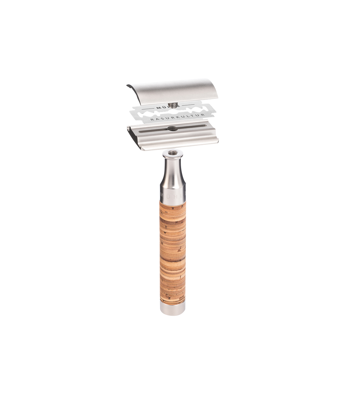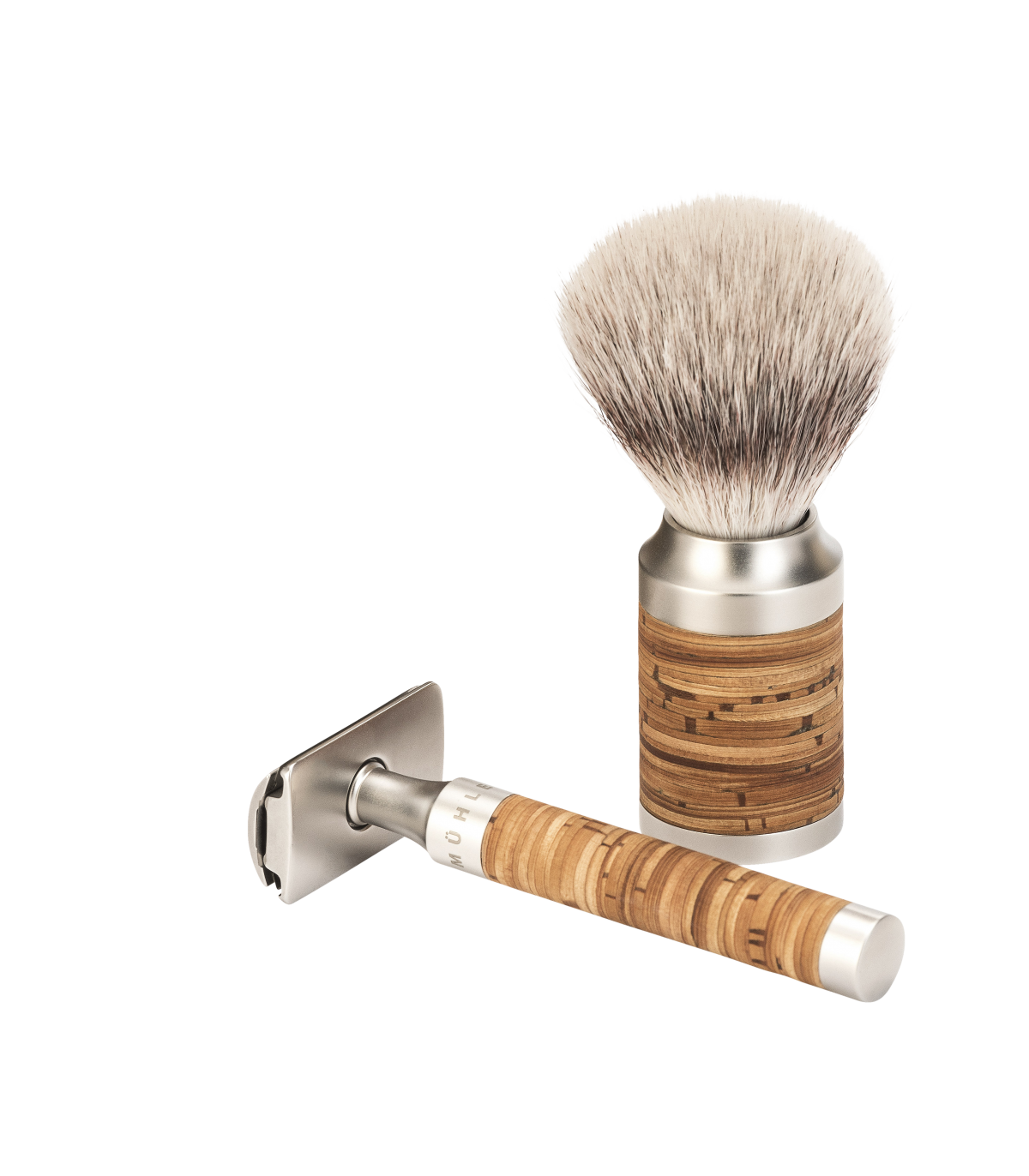 Set de Afeitado Mühle Rocca Corteza de Abedul – Tejón Punta Plata y Maquinilla Clásica