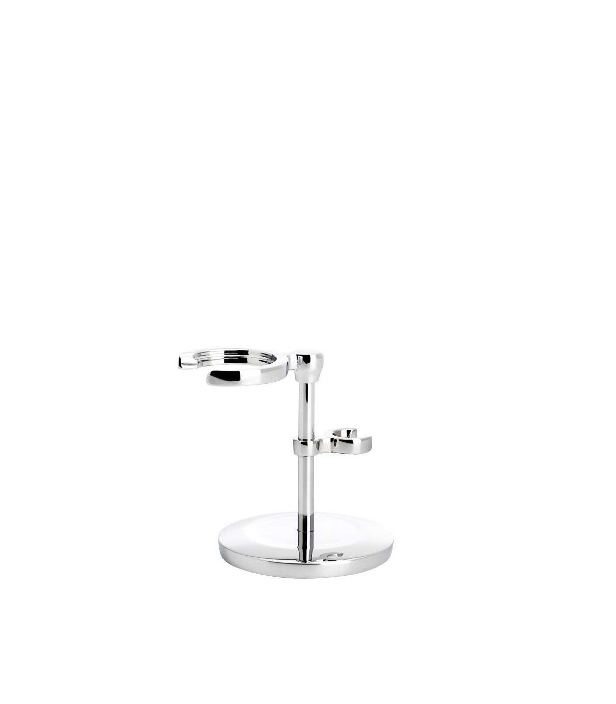 - Organización elegante y funcional: El soporte cromado permite que tanto la brocha como la maquinilla se sequen adecuadamente después de cada uso, preservando su calidad y durabilidad.