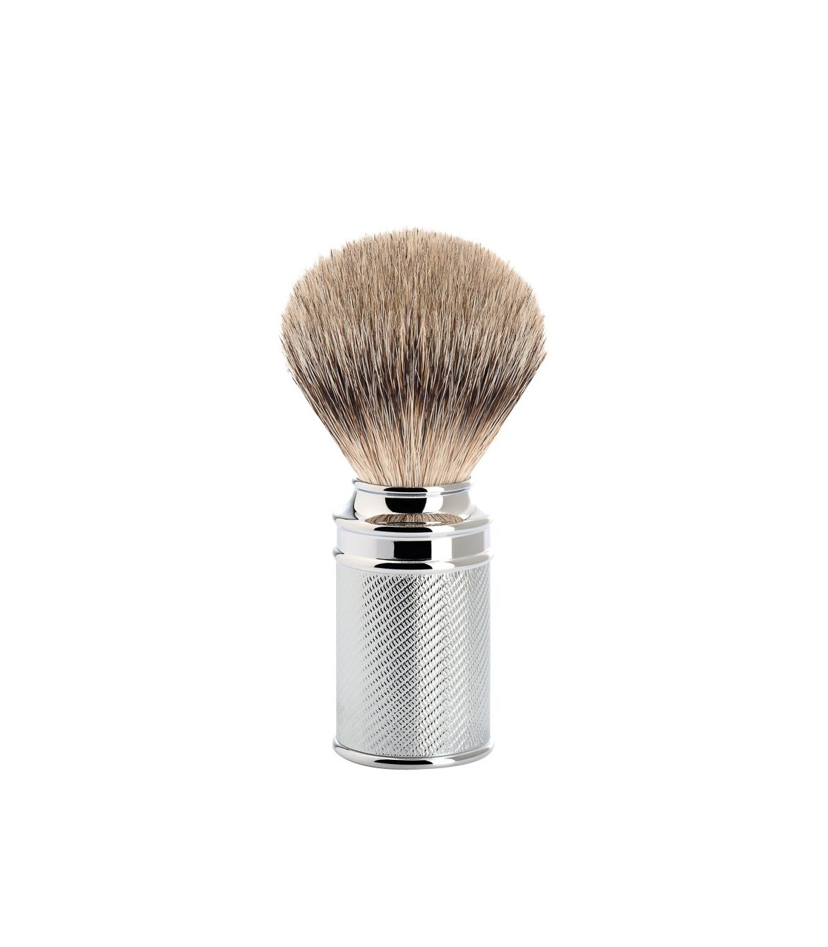 - Color distintivo y capacidad de absorción: El brillo plateado del pelo, con su característica banda negra, la convierte en una pieza icónica. Absorbe gran cantidad de agua, asegurando una espuma rica y cremosa en cada uso, ideal para un afeitado cómodo y eficaz.
