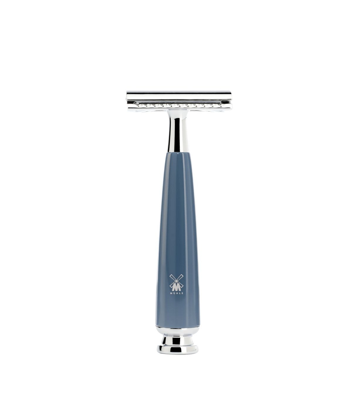 Set de Afeitado Mühle Rytmo Azul Petrol Maquinilla de Afeitar Clásica Peine Cerrado, Brocha de Afeitar Sintética Black Fibre, Soporte Cromado y Bol Jabonero Cromado