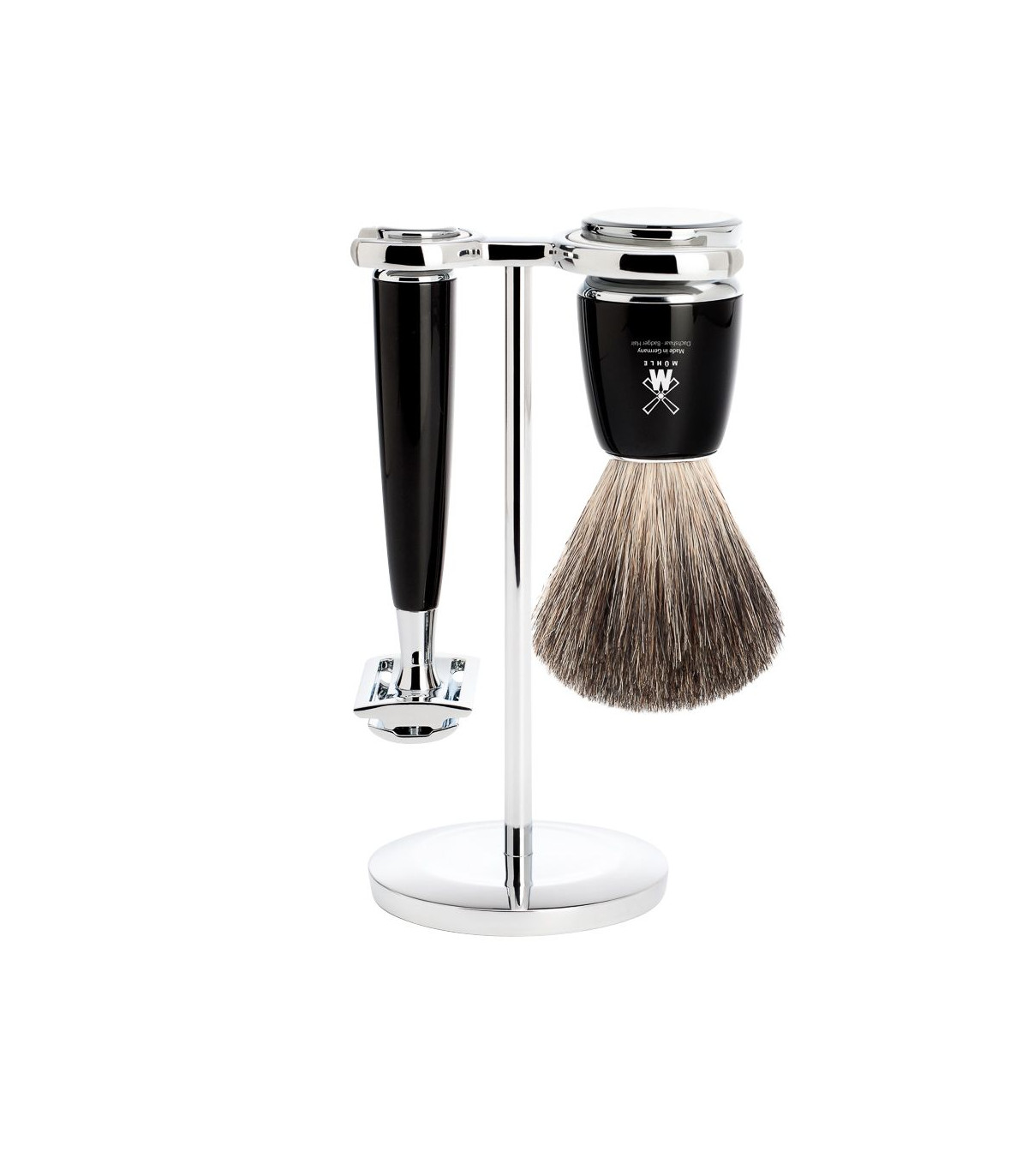 Set de Afeitado Mühle Rytmo Negro - Brocha de Tejón Puro, Maquinilla Clásica y Soporte