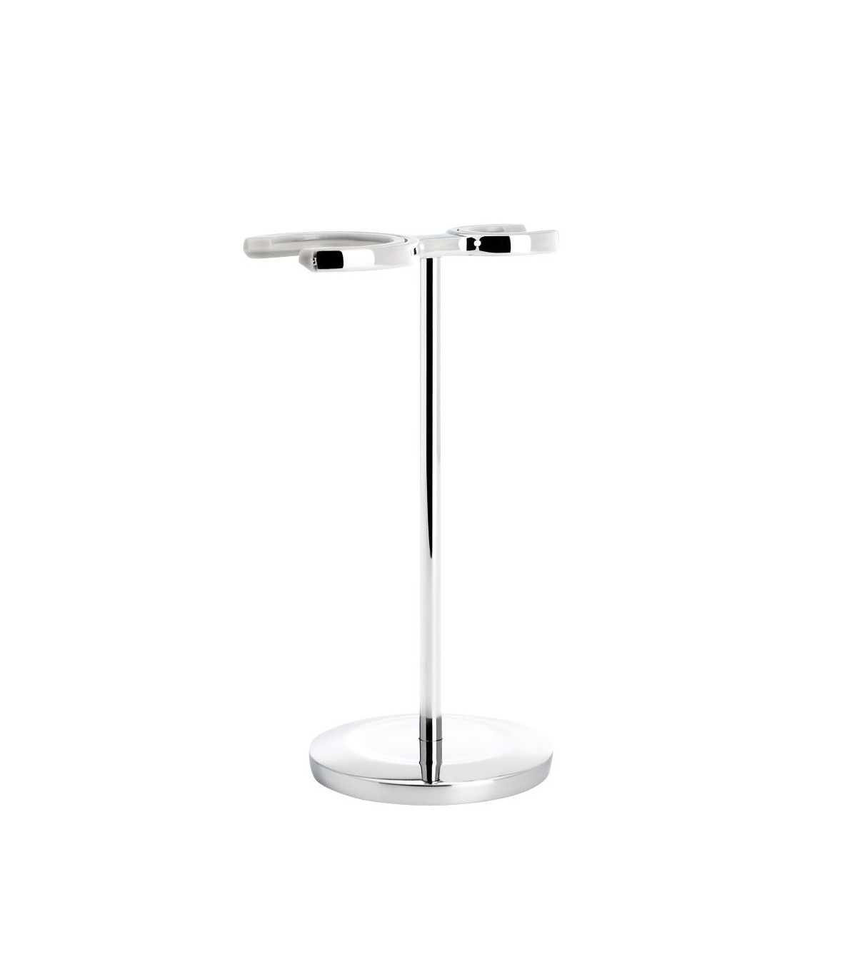 - Estilo moderno: Con su acabado cromado brillante y su diseño compacto, este soporte añade un toque de modernidad a cualquier espacio de afeitado, manteniendo tus herramientas en las mejores condiciones.