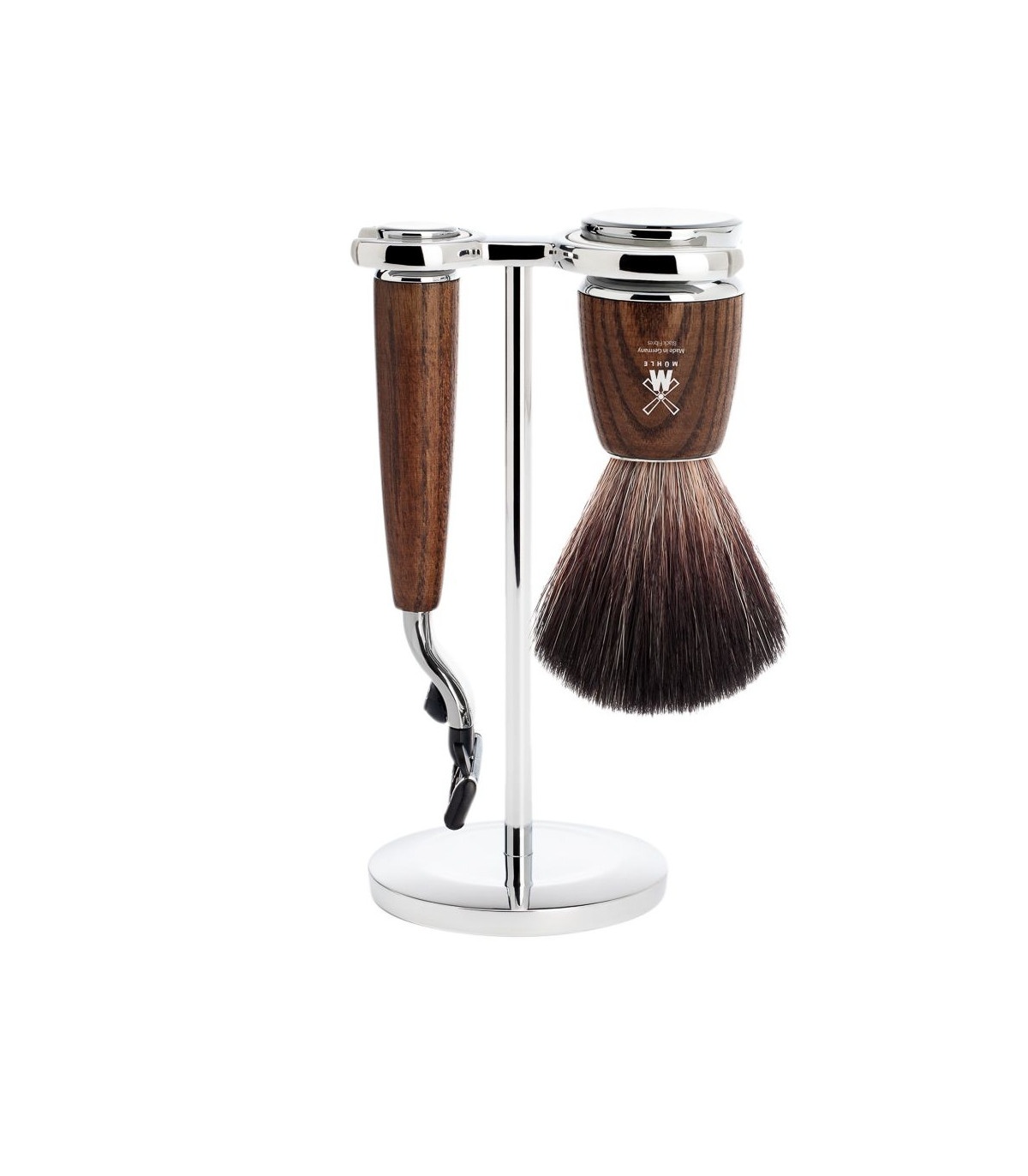 Set de Afeitado Mühle Rytmo Brocha de Fibra Sintética y Maquinilla Gillette® Mach3® con Mango de Madera de Fresno