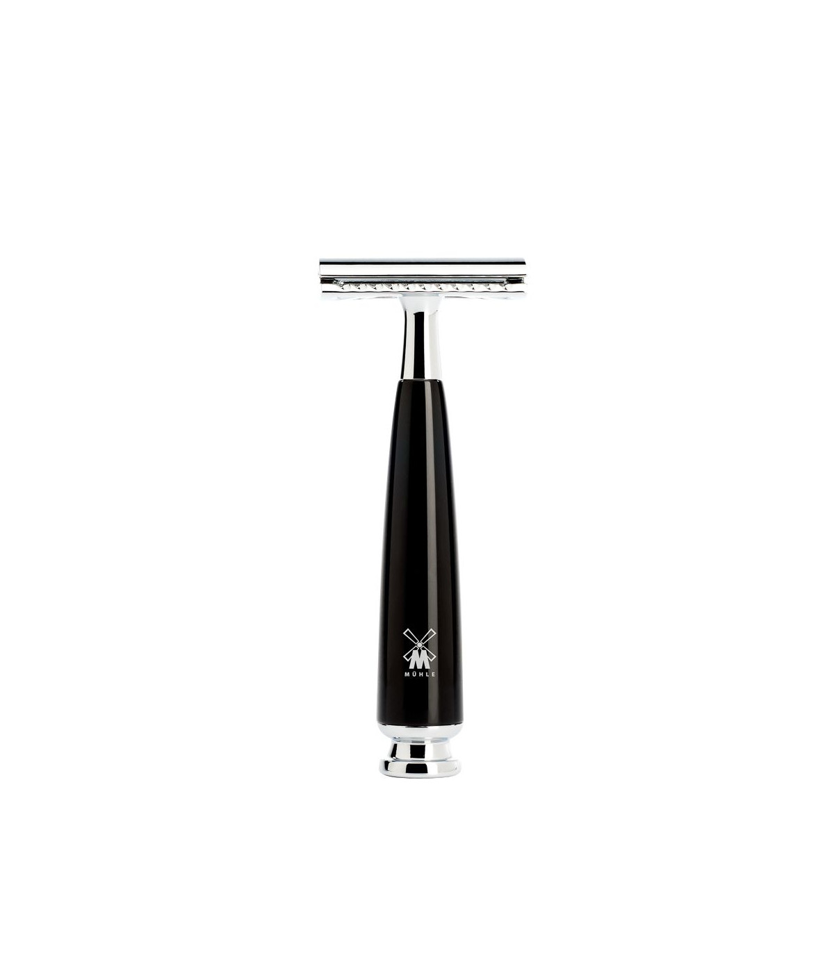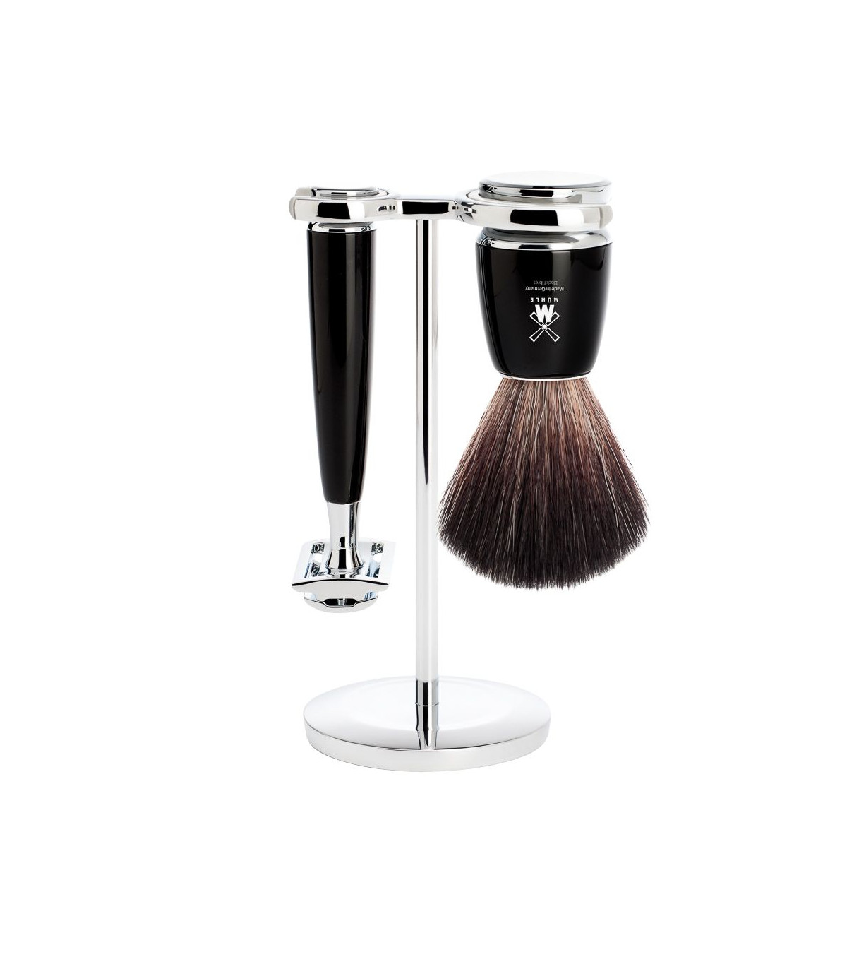 Set de Afeitado Mühle Rytmo - Maquinilla Clásica Peine Cerrado, Brocha Pelo Sintético y Soporte en Negro
