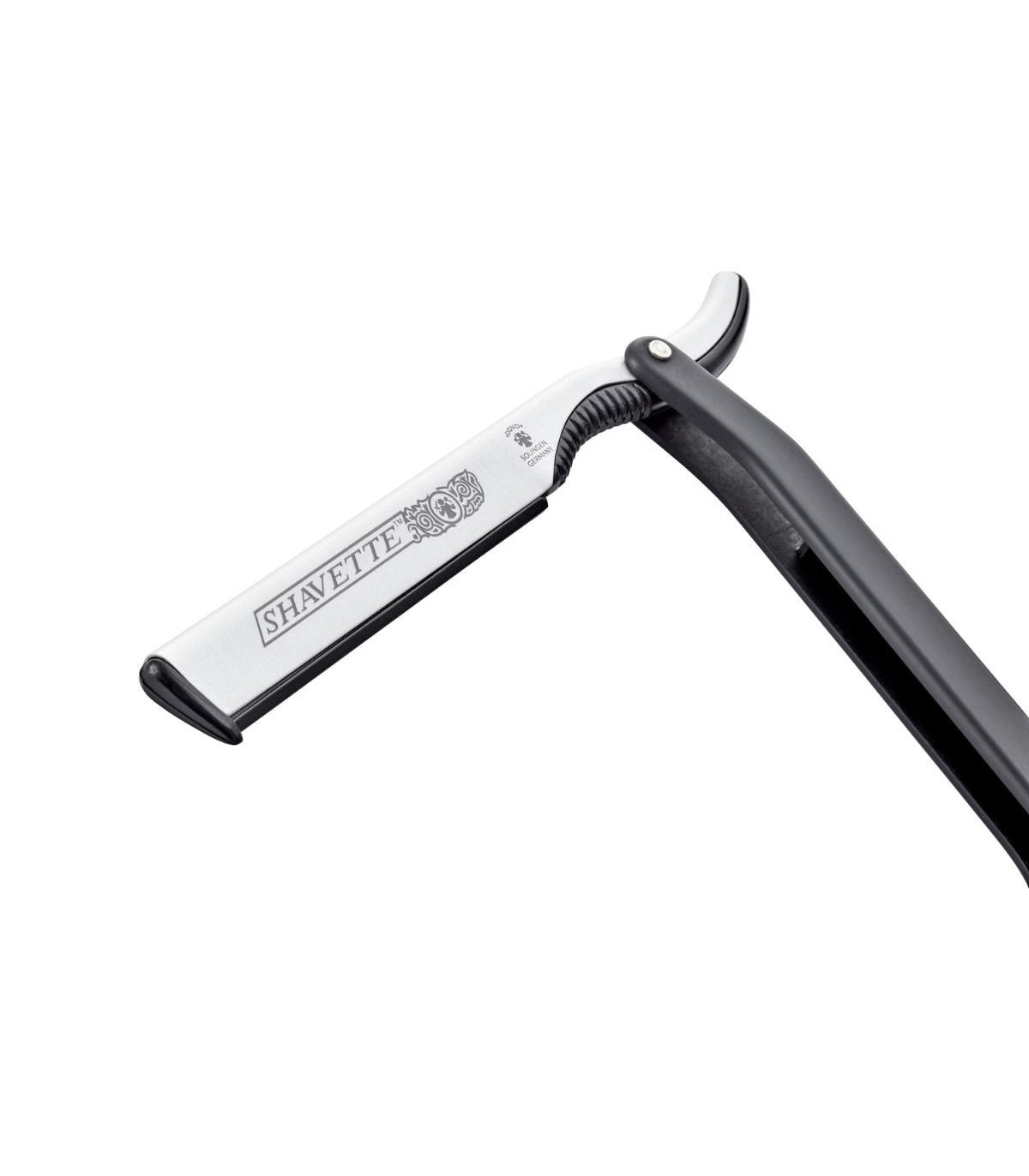 Al igual que una navaja recta clásica, la Shavette permite un afeitado tradicional y preciso. Sin embargo, la posibilidad de cambiar la hoja facilita un uso higiénico, asegurando una cuchilla fresca para cada cliente en el entorno de la barbería.