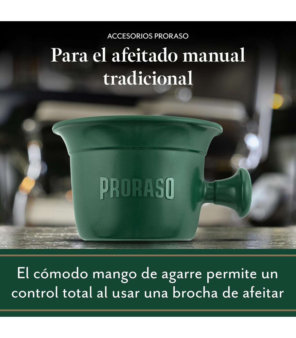 Taza Jabonera Afeitado con Asa Color Verde de Plástico Proraso